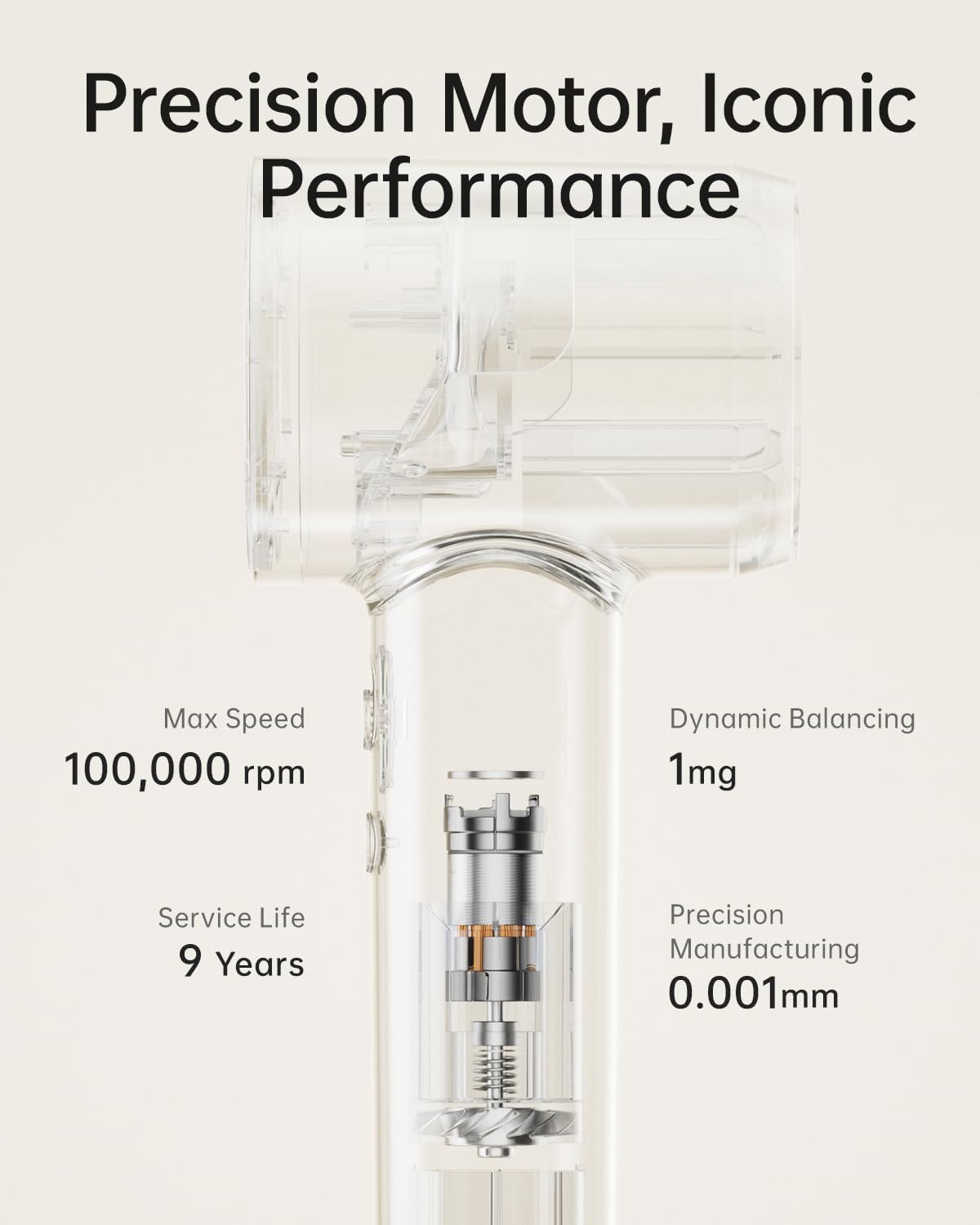 - [Faster Hair Drying] Powered by an improved brushless motor, the hair dries quickly - faster than conventional hair dryers.