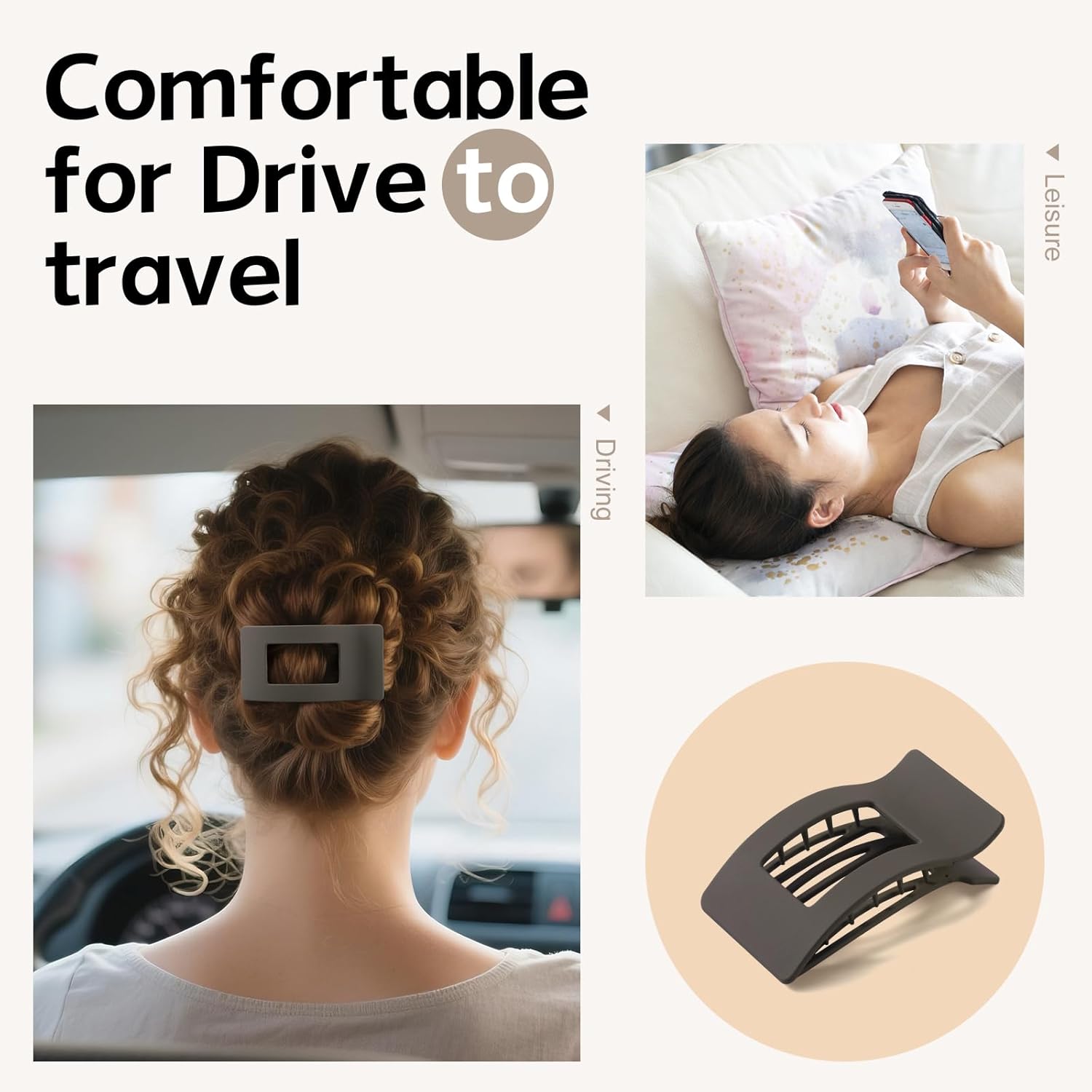 - All-Day Comfort:Our french hair clips features a lay-flat design ,conforms to the shape of your head. Whether you are driving, relaxing on the sofa, or sitting in a high-backed chairs, it can eliminate the pressure on the back of your head and is very suitable for wearing all day.