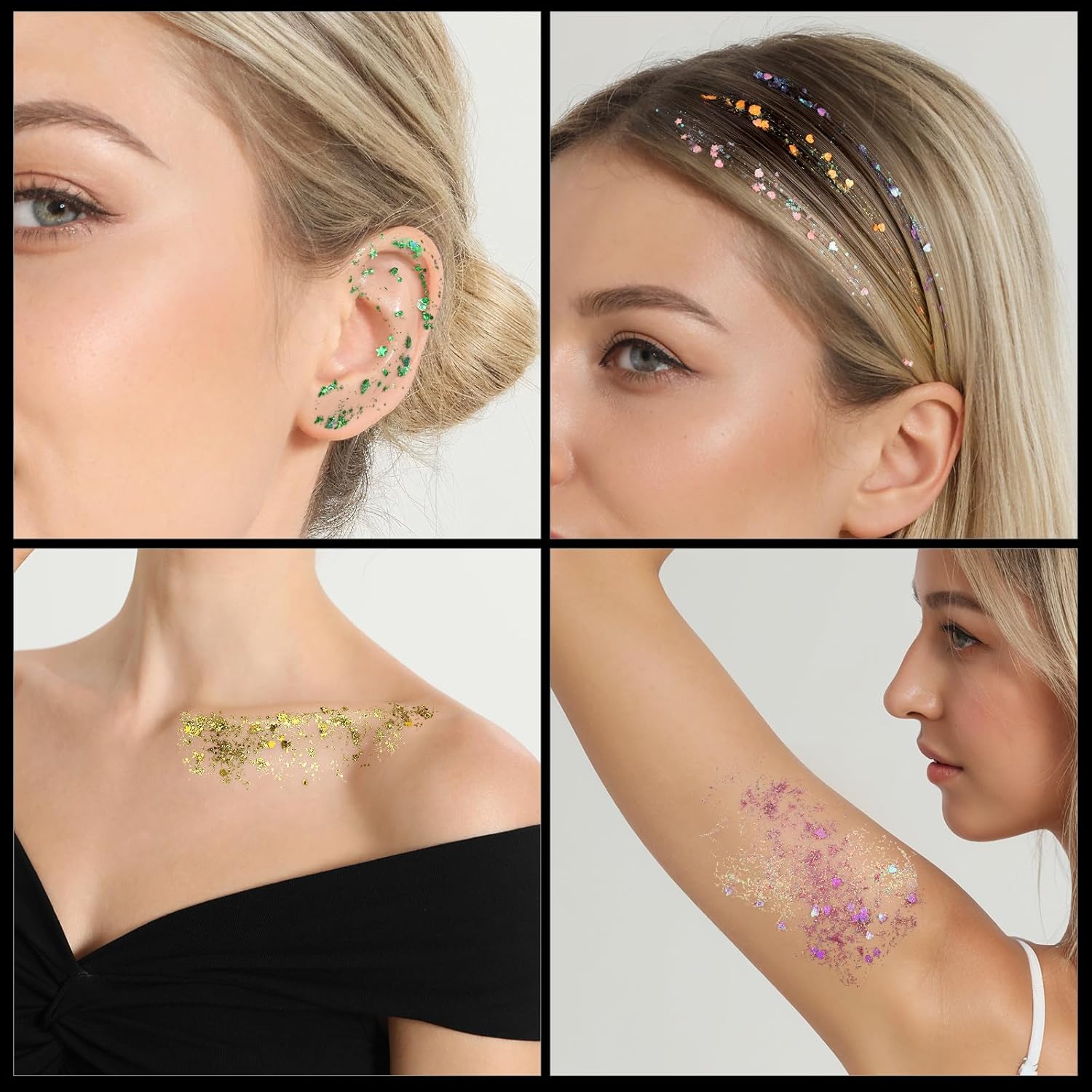 - Applicable for Festivals and variable occasions:Whether it’s Halloween, Mardi Gras, Christmas, New Year, any other festivals, or concerts, parties, clubs, performances, as long as you want glitter makeup for yourself to be sparkly, the face glitter gel is suitable for you. It can make sure you are glamorous and eye-catching from your head to your toe in the crowd.
