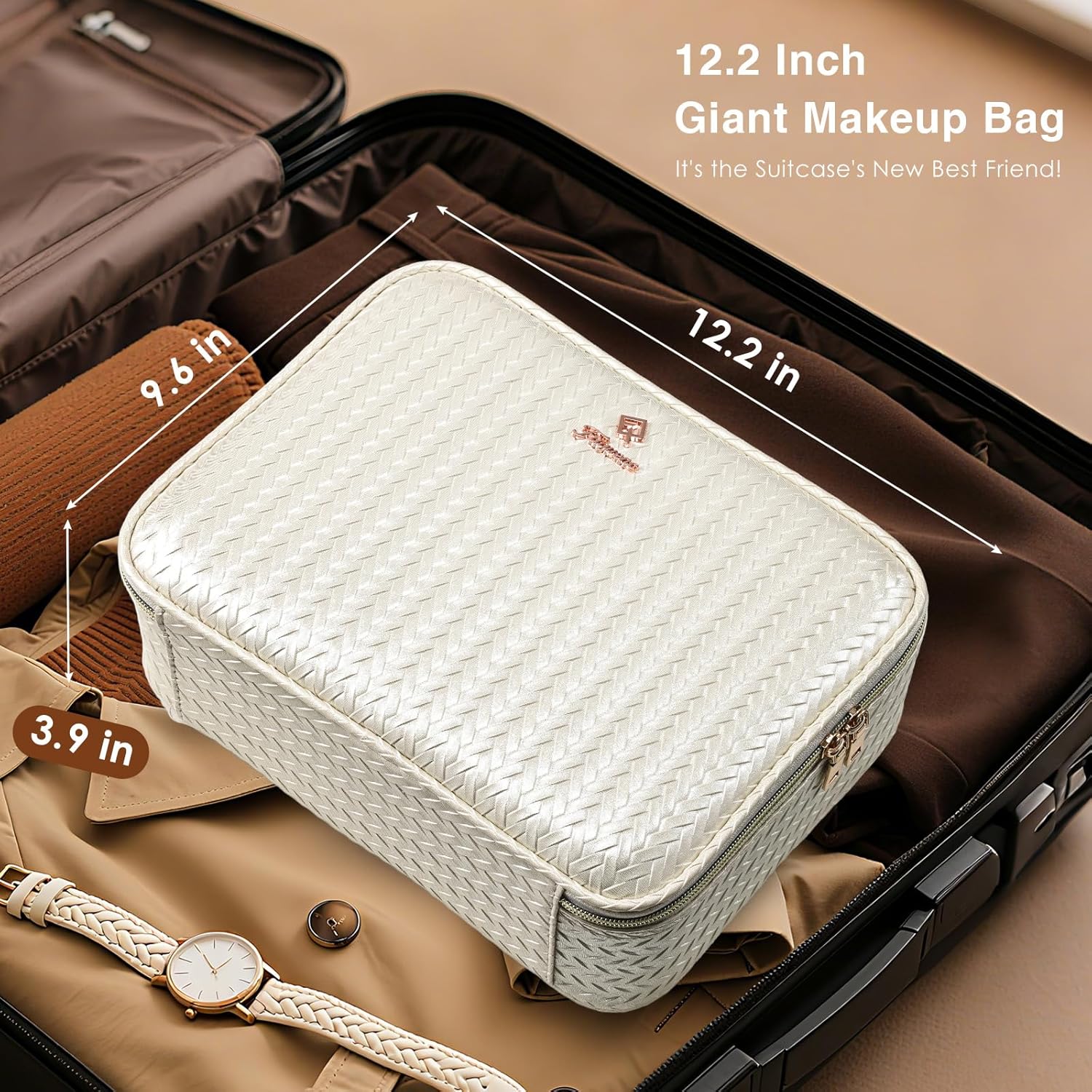 - 【VERSATILE PORTABLE MAKEUP BAG】- Its portable 12.2"x3.9"x9.6" size makeup case offers enhanced storage capacity, incorporating a dedicated brush tool bag alongside a 4K silver-plated mirror featuring three adjustable lighting modes. Its suitability extends to both business travel and personal excursions, facilitating the convenient transport of essential grooming supplies. Constructed from refined synthetic leather, the Faquenc makeup bag exhibits robust durability and resistance to water and wear.