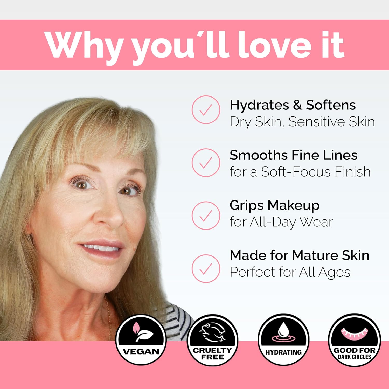 - DESIGNED FOR MATURE & DRY SKIN: Created for women with dry, sensitive, or mature skin, this hydrating primer smooths the look of fine lines and dry patches while prepping your face for even, long-lasting makeup.