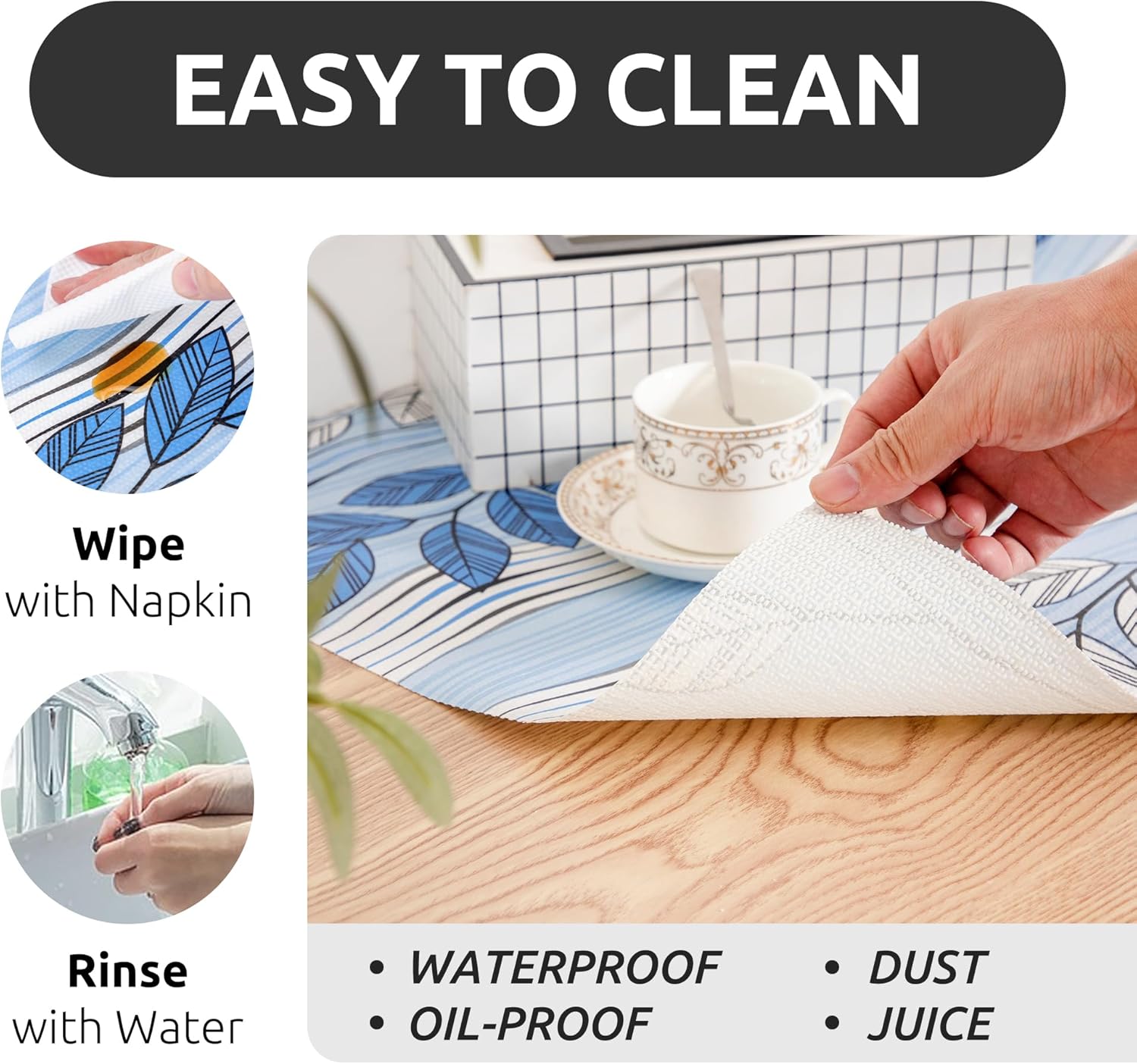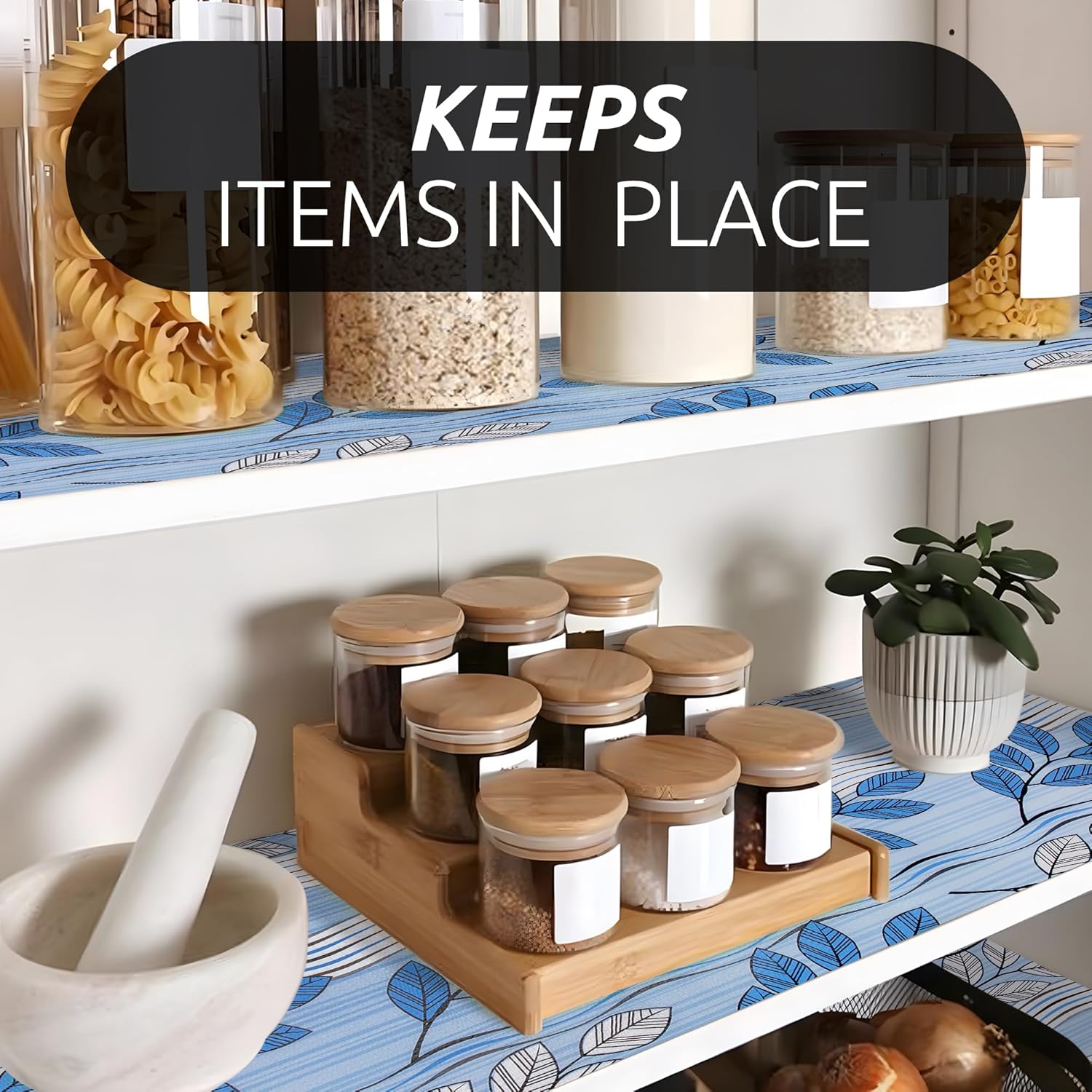RAY STAR 12X120 Inch Shelf Liner for Kitchen Cabinets, Non-Adhesive Cabinet Liner Washable, PVC Drawer Liner for Dresser Non-Slip Bathroom (Blue Leaf)(2 Roll)