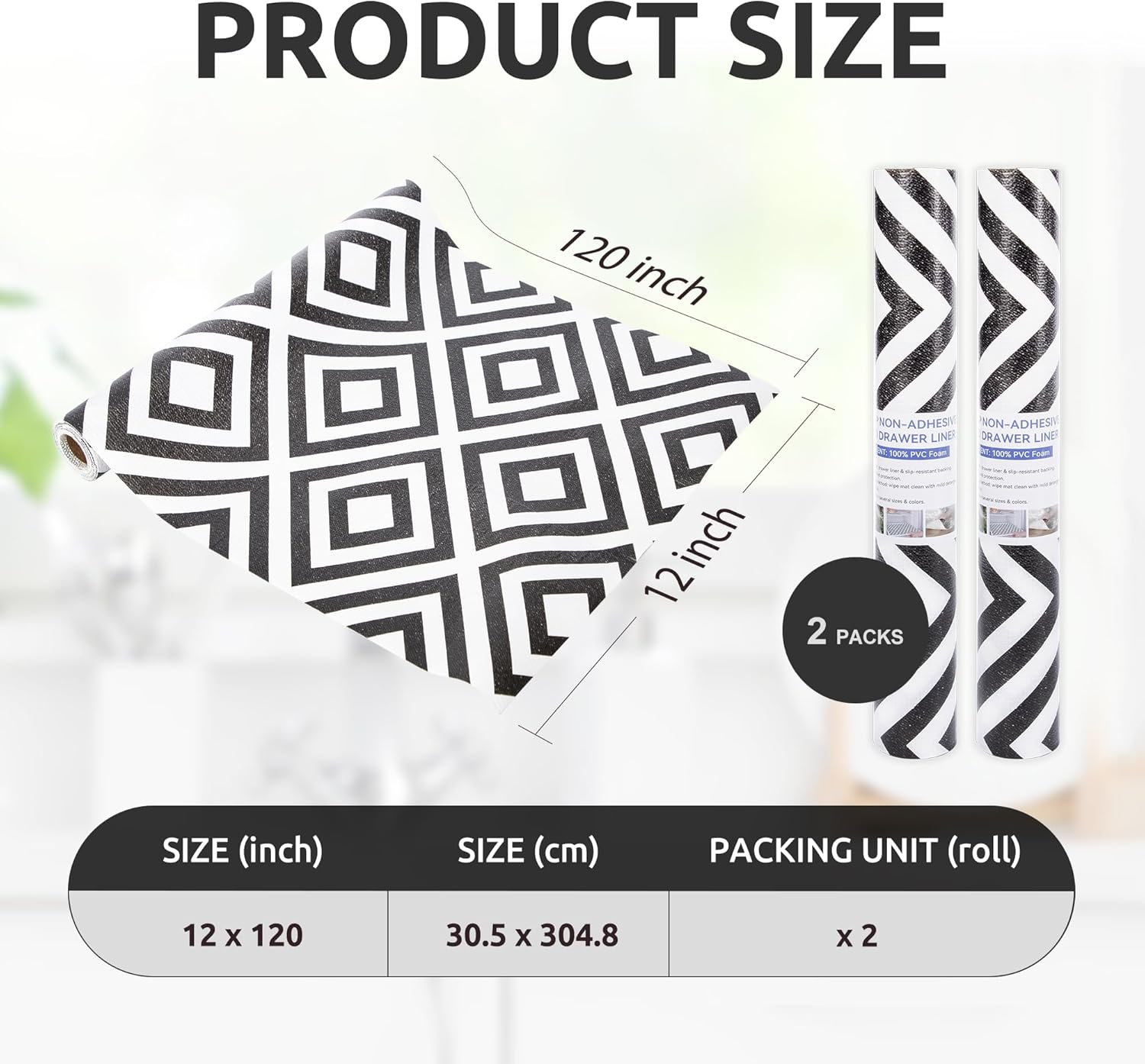 RAY STAR 12X120 Inch Shelf Liner for Kitchen Cabinets, Non-Adhesive Cabinet Liner Washable, PVC Drawer Liner for Dresser Non-Slip Bathroom (Modern Black)(2 Roll)