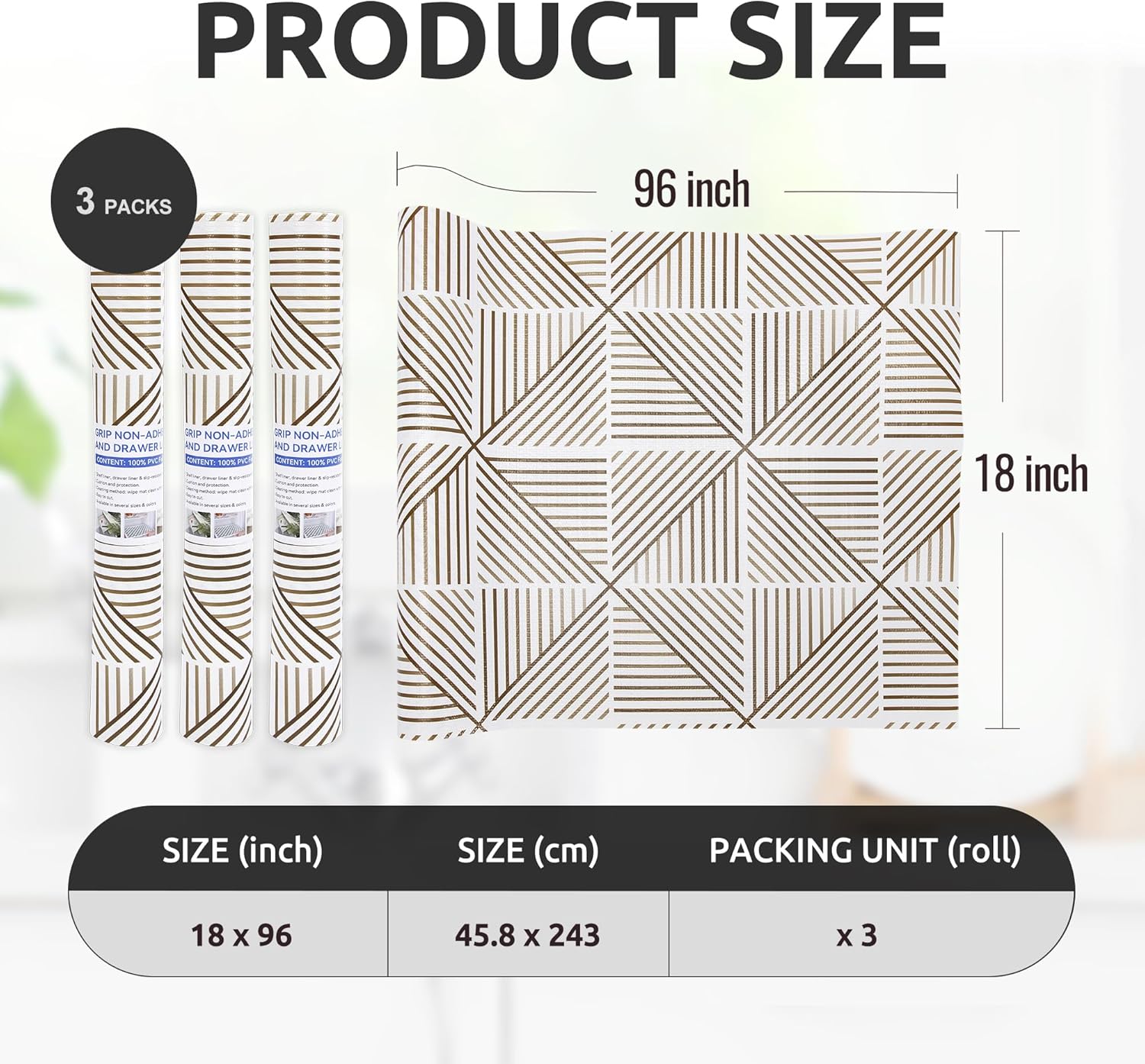 RAY STAR 18X96 Inch Shelf Liner for Kitchen Cabinets, Non-Adhesive Cabinet Liner Washable, PVC Drawer Liner for Dresser Non-Slip Bathroom (Classic)(3 Roll)