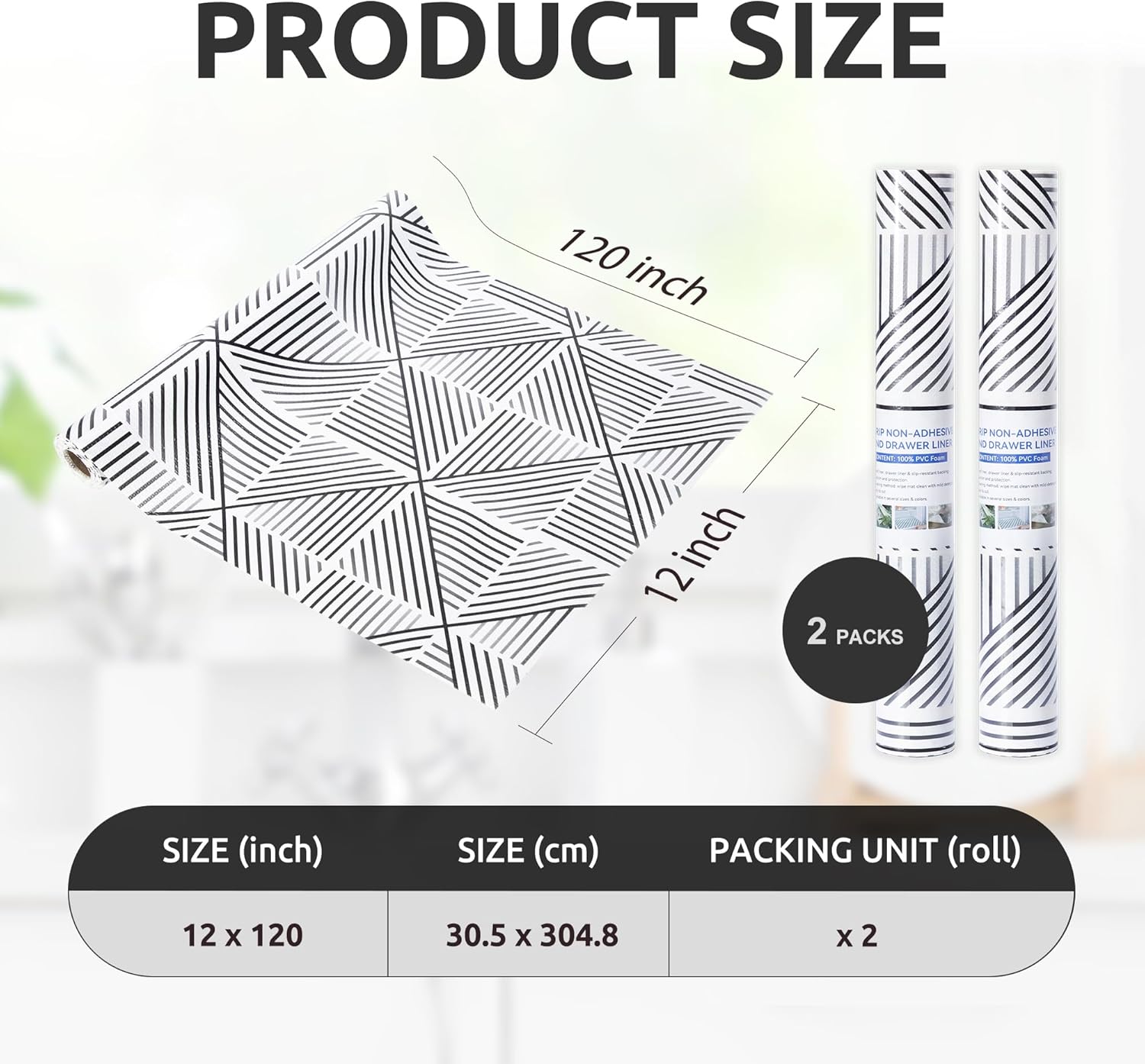 - Details of Shelf Liner - The size of each roll is 12*120 inch, we believe that is perfect wide for the shelves. In addition, it is easy to cut out if you need to modify the size. Moreover, our shelf liner is easy to clean with a towel because it is waterproof and oil-proof