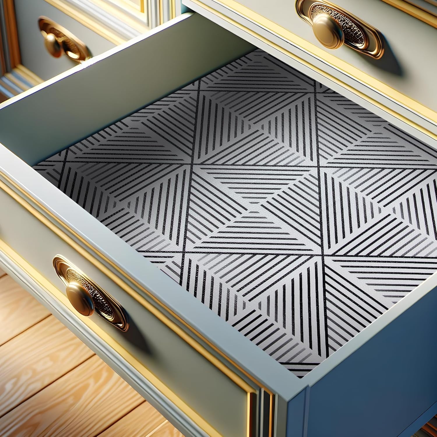 - PVC Material - These shelf liners are made by PVC material which is non-adhesive & non-slip. Non-adhesive drawer liner is reducing slip and bunch in your drawers or cabinet shelves, it will keep both the liner in place on surface s, as well as helps prevent items from moving