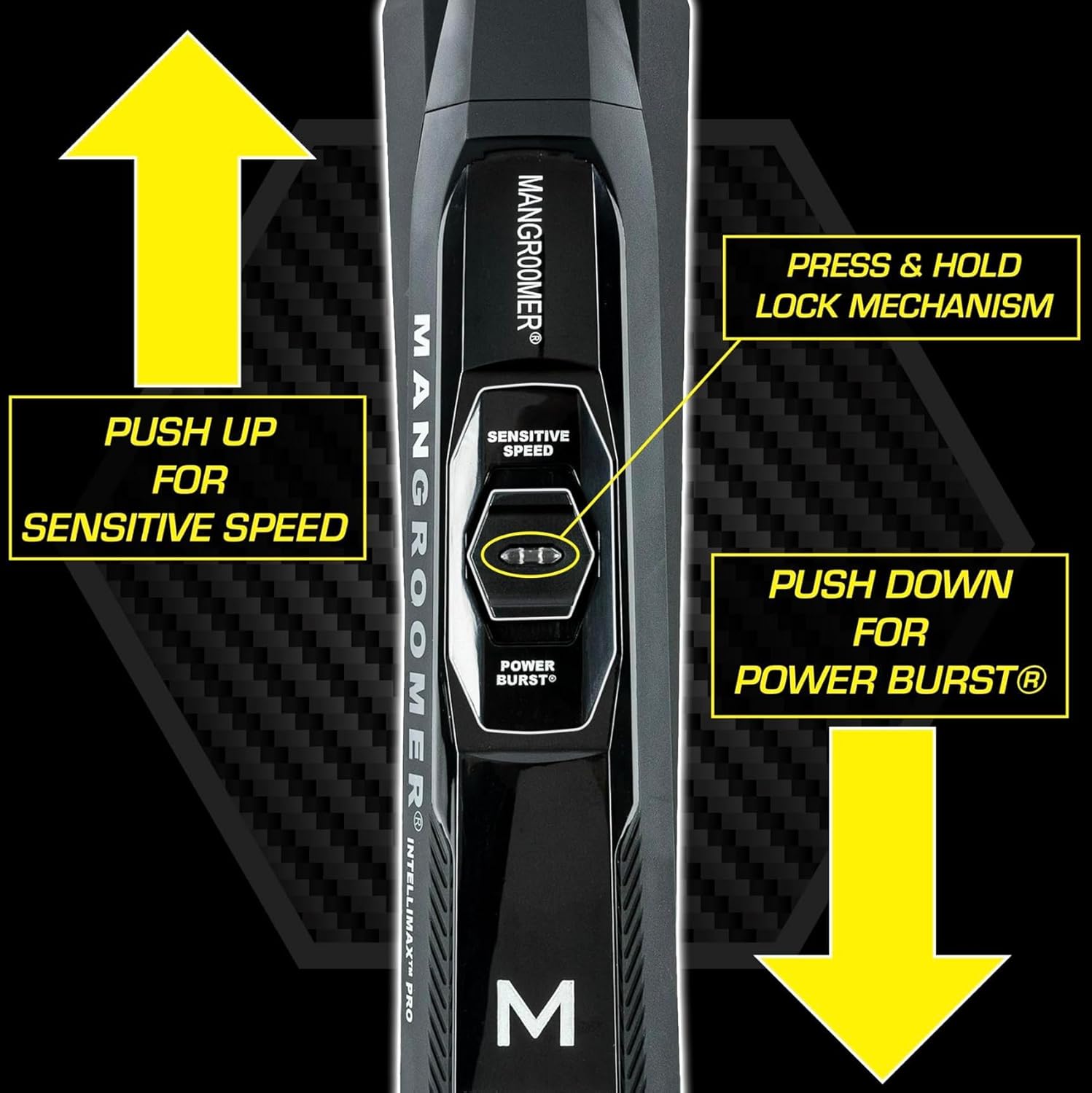 - Our High-end packaging makes it a great for a gift and storage. MANGROOMER takes back hair removal, manscaping and men's grooming to the MAX with the MANGROOMER INTELLIMAX PRO Back Hair Shaver and all-new INTELLIMAX PRO Rechargeable and Swappable Lithium Battery System for all MANGROOMER INTELLIMAX PRO shaving products.