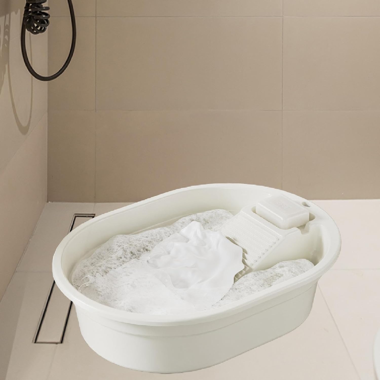 Washboard Basin Laundry Basin Convenient Multifunction Portable Wash Tub Scrubbing Board for Dormitory Hand Wash Home Clothes, White