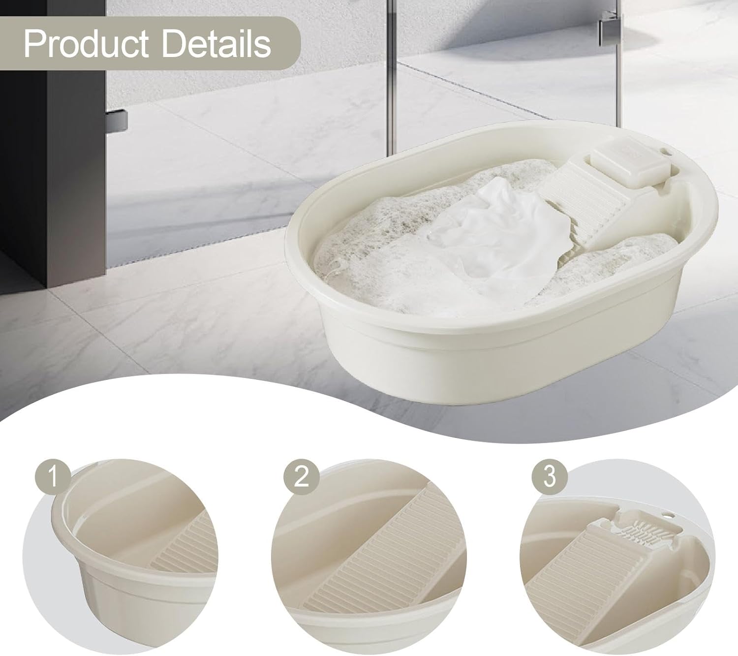 - 【Versatile Use】: Great for hand washing small items like T shirts, socks, shirts, and pants for your children at home. This wash basin with a built in washboard makes laundry tasks simple and efficient
