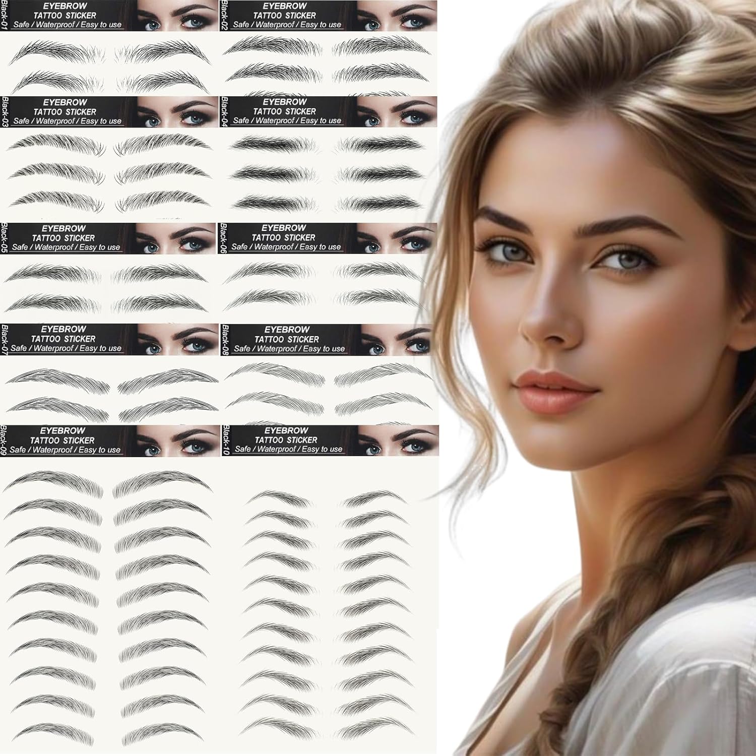 - 180–220 PAIRS IN ONE PACK – SHARE THE BEAUTY: Each pack includes 20 sheets with 180–220 pairs of eyebrow tattoos in a wide variety of styles. From soft, natural brows to bold, defined arches, there's a look for every mood and makeup style. You can even share with a friend or gift it as a fun and thoughtful beauty surprise