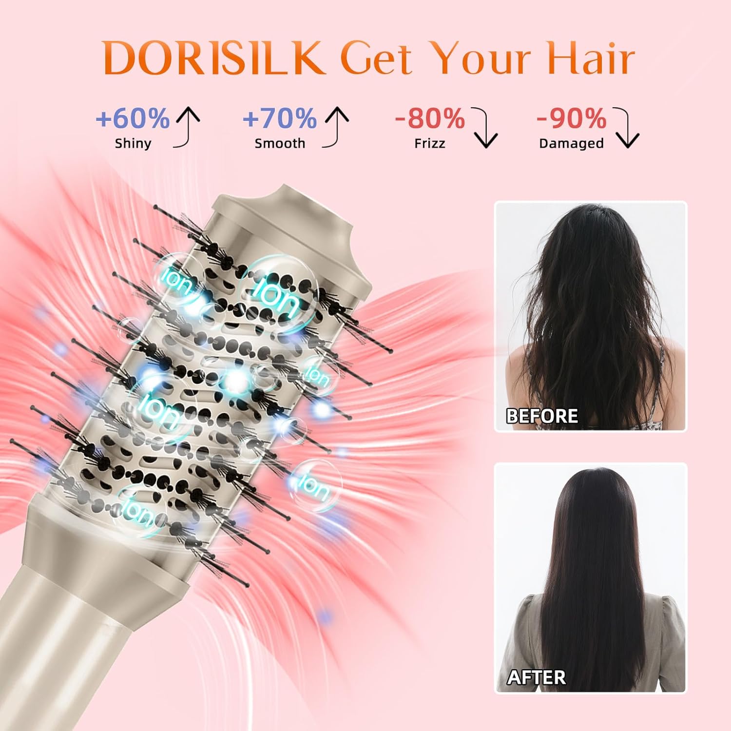 DORISILK 8 in 1 Hair Styler & Hair Dryer Brush Blow Dryer, 110,000 RPM High-Speed Hot Brush Styler and Auto Wrap Curlers, Ionic for Smoothing Straightening Curling Volumizing Drying, Champagne Gold