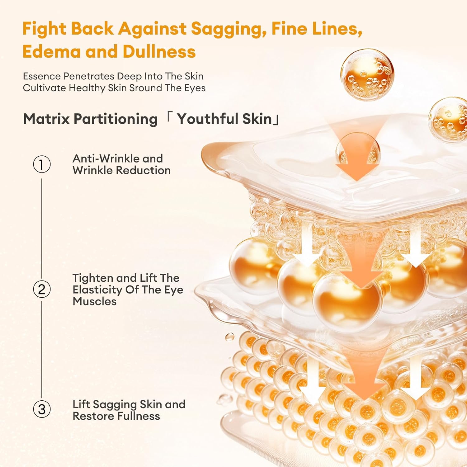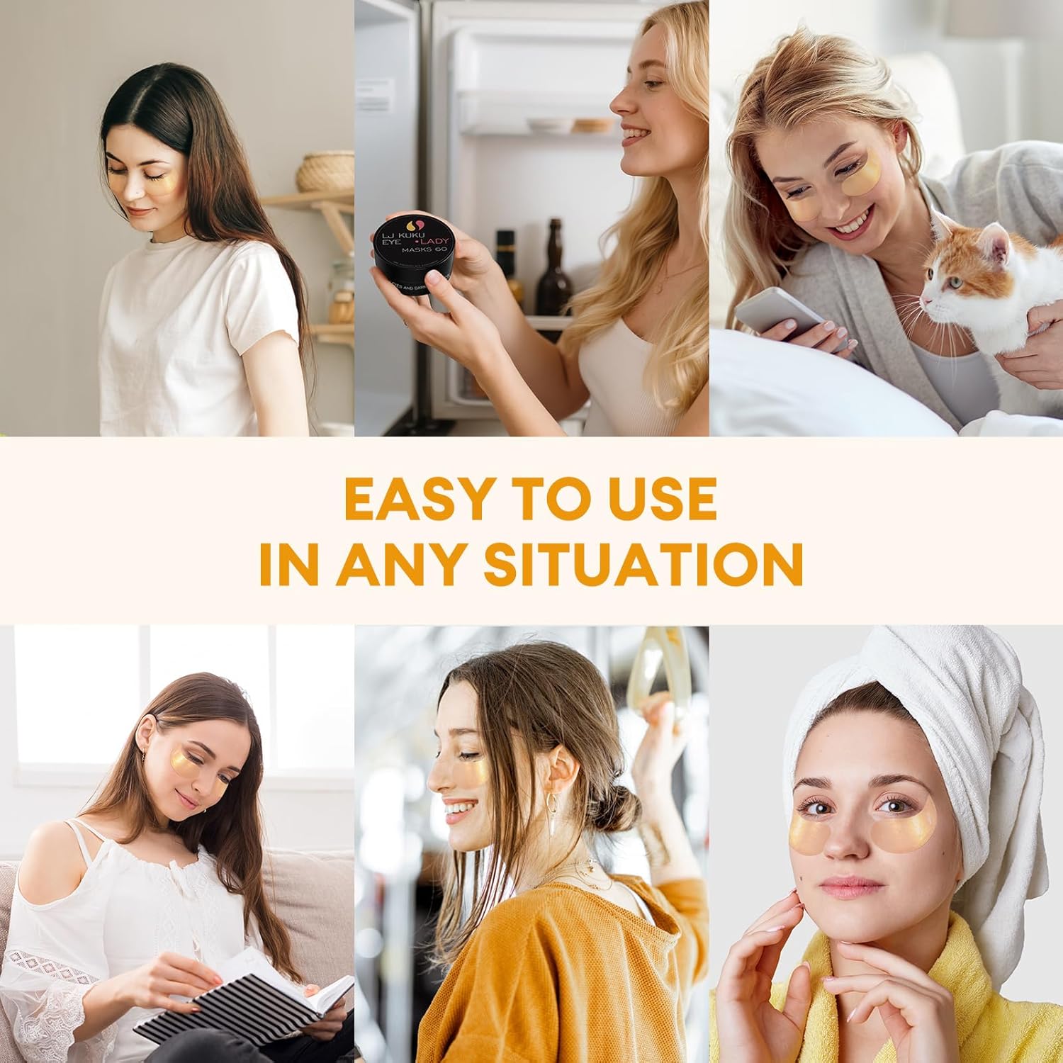 - Premium natural ingredients preventing it from drying out and strengthening the skin's barrier.Gold essence on the hydrogel patches help smooth fine lines and skin elasticity, firming, brightening, target puffiness dark circles and bags under the eyes, to get a noticeable and long-lasting results and regain confidence!