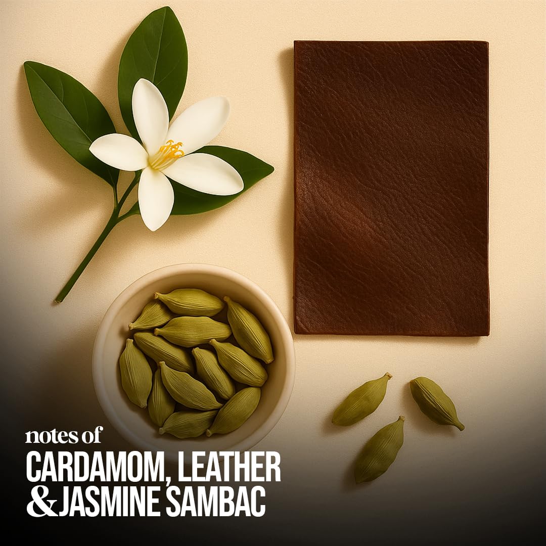 - π‘π’π§ππ¦ β A commanding blend of Cardamom, Leather, Jasmine Sambac, Amber, Moss, and Patchouliβlayer it with grooming essentials for a lasting, sophisticated aura.
