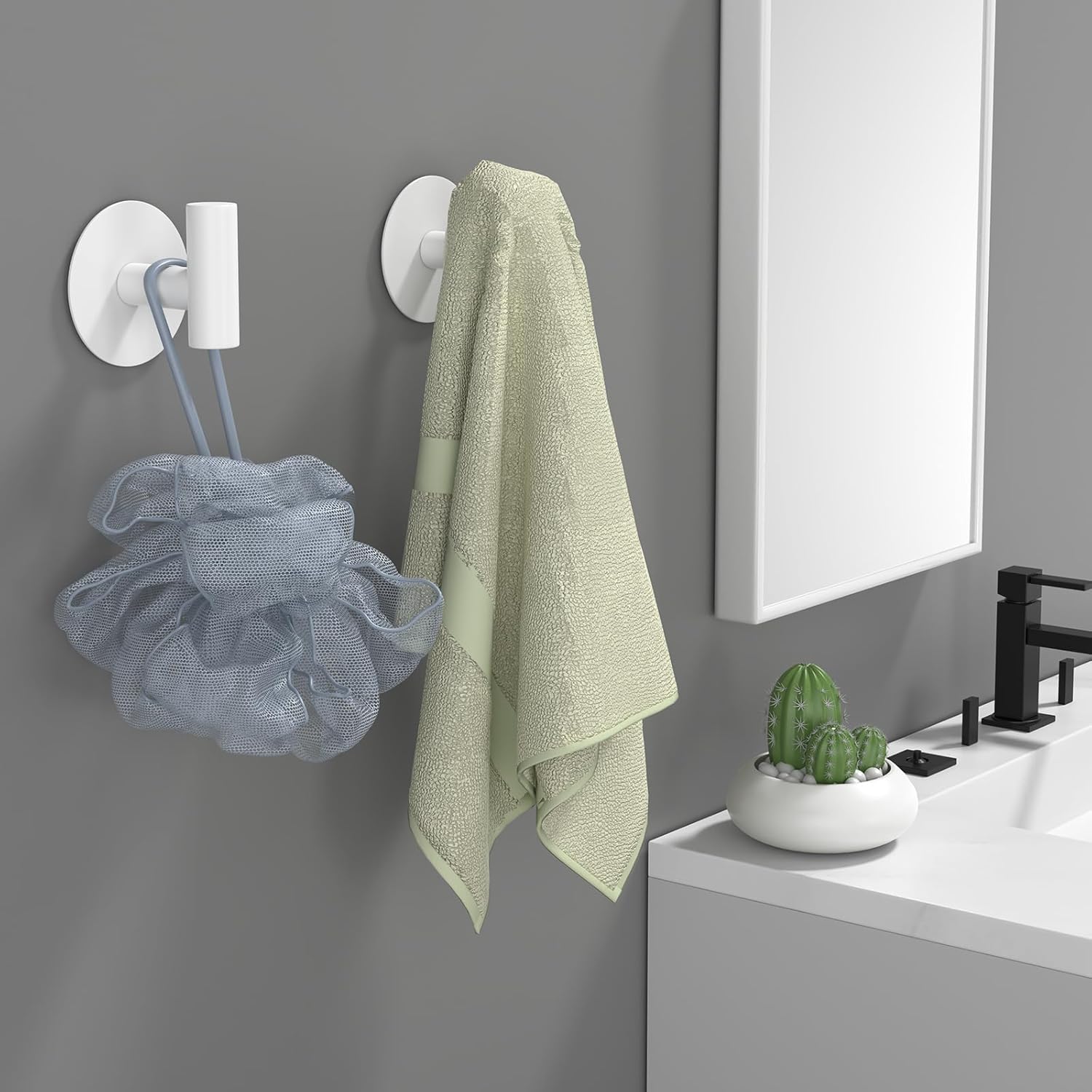 Heavy Duty White Towel Hooks, Stainless Steel Adhesive Coat Hooks for Bags, Towels, Robes, Hats, Aprons – No Drill Bathroom, Kitchen, Hotel Wall Hooks (2 Pack)