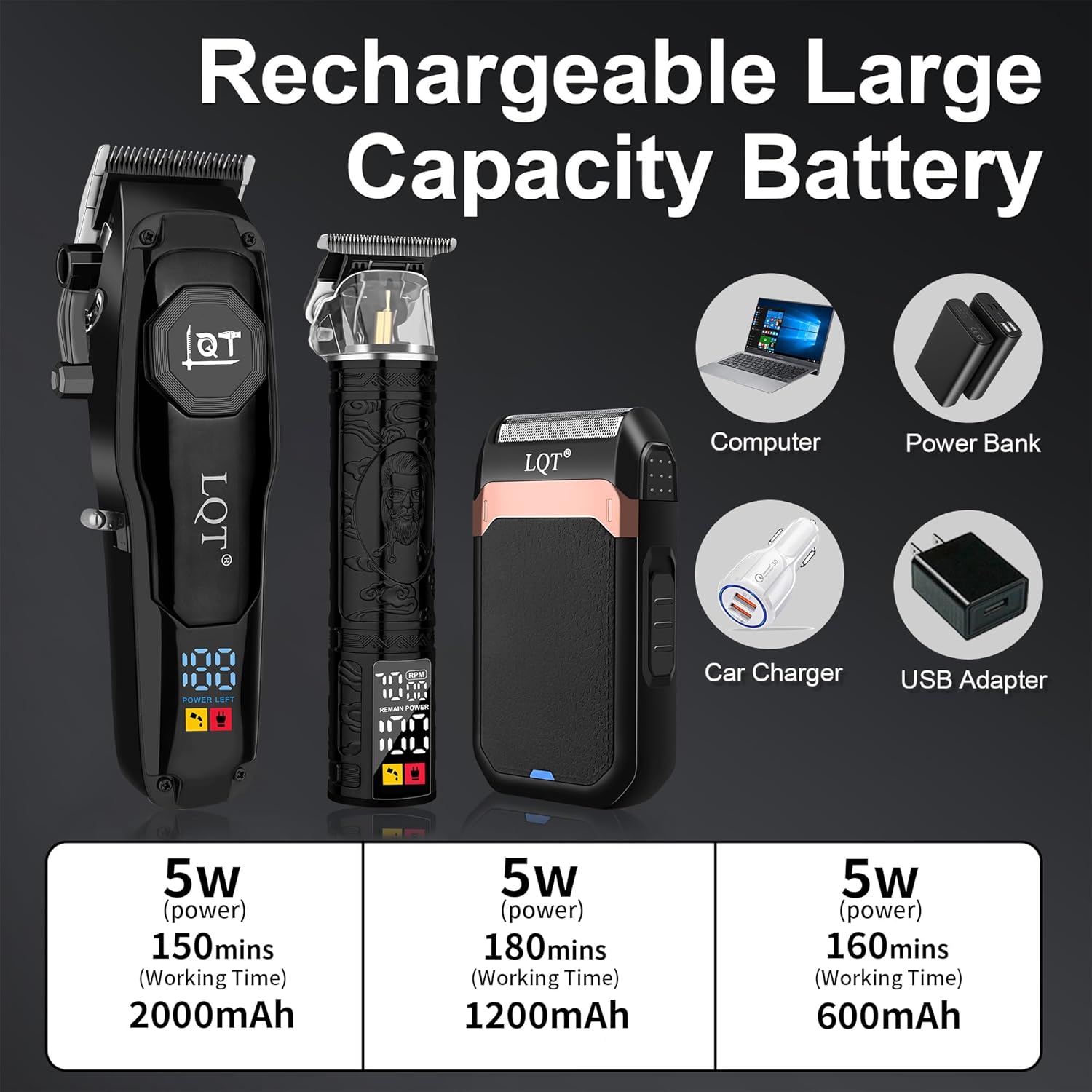 - 【Adjustable Taper Lever & Quiet Powerful Motor】The LQT hair clippers for men are built with an upgraded taper lever that allows seamless blending and precise fading, giving you professional barber-level results at home. The strong yet quiet motor delivers consistent cutting power without snagging, making these professional barber clippers ideal for fades, beard detailing, and full haircuts in salons or for home grooming.