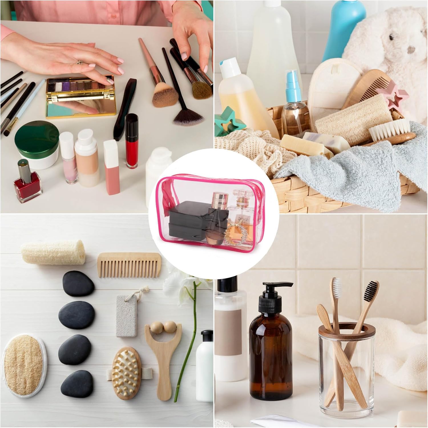 Tbestmax 40 Pack Clear Cosmetic Bags Makeup Bags Portable Waterproof Travel Toiletry Bags Organizer Rose Red, 7.5"x 4.8"x 2.3"