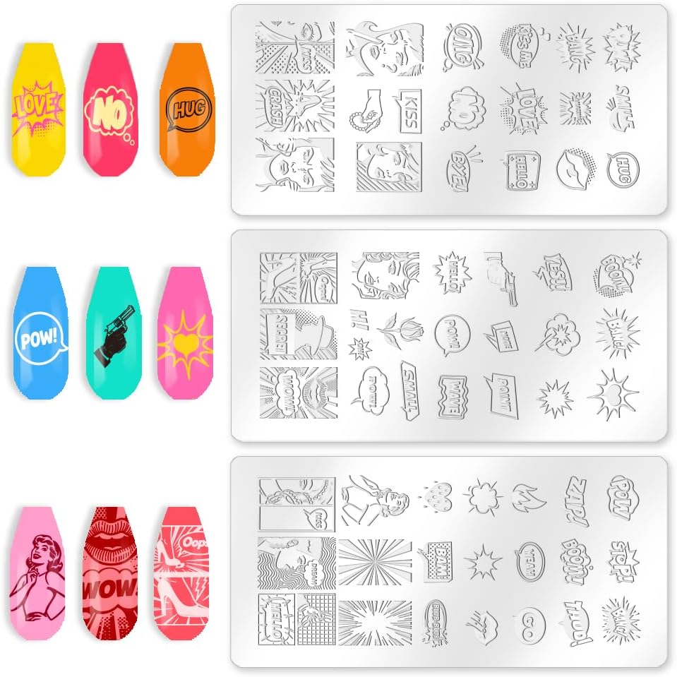 benikmake 3pcs Pop Art Nail Stamp Plate 58 Retro Popart Design Nail Printing Stainless Stencils Stamp Plates Kit for Nail Salon 6x12cm 2.36x4.7inch