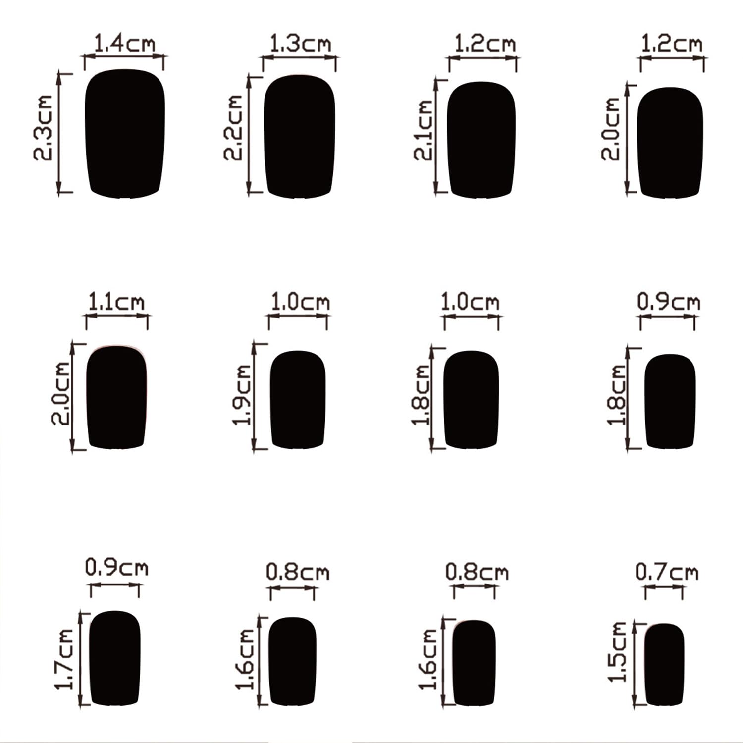 - Package: You'll get 24 fall maple leaf fake nails in 12 sizes. 1 mini nail file, 1 small wooden stick, 1 piece of adhesive tab glue. You can safely choose a fake nail that fits your finger size and DIY your desired nail shape