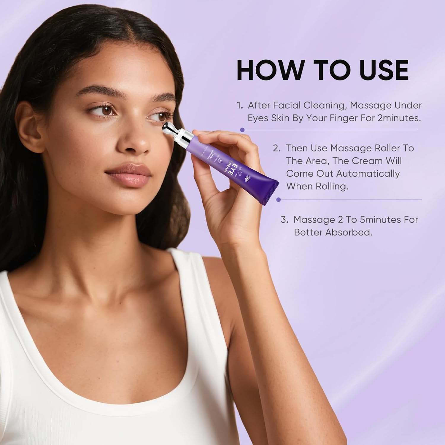 Eye Cream Anti Aging, 5% Mate Caffeine Dark Circle Under Eye Cream with Roller, Eyes Bags Treatment for Men, Undereye Dark Circles Puffy Eye Bag Remover for Tightening Wrinkle Puffiness 0.71 OZ