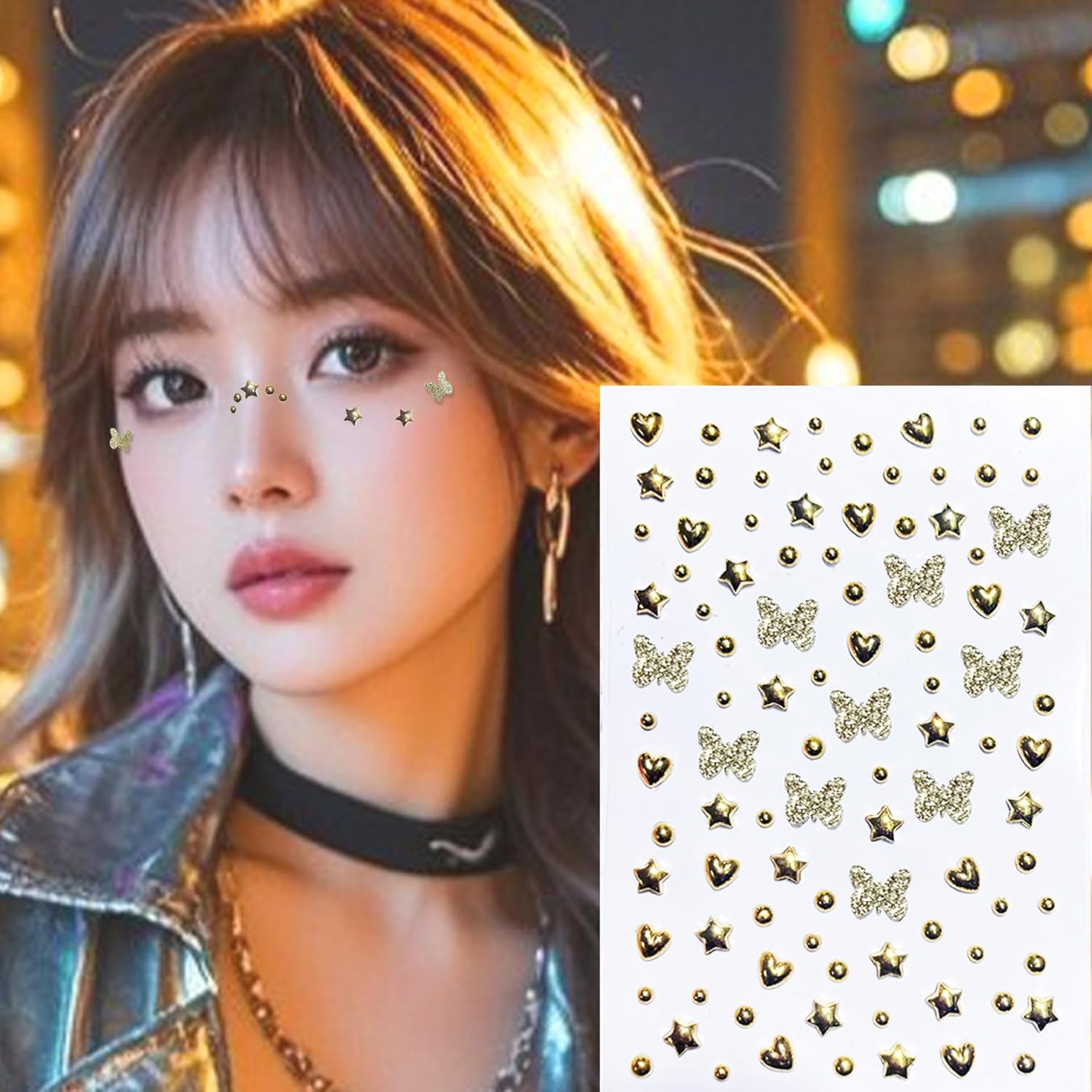- Self-Adhering Face Gems with an Easy Application - The festival face jewels are already sticky where you can peel and stick to your face.These cute face gems adhere smoothly and comfortable to your skin, and have a shimmery iridescent finish to give your look a sparkly upgrade.