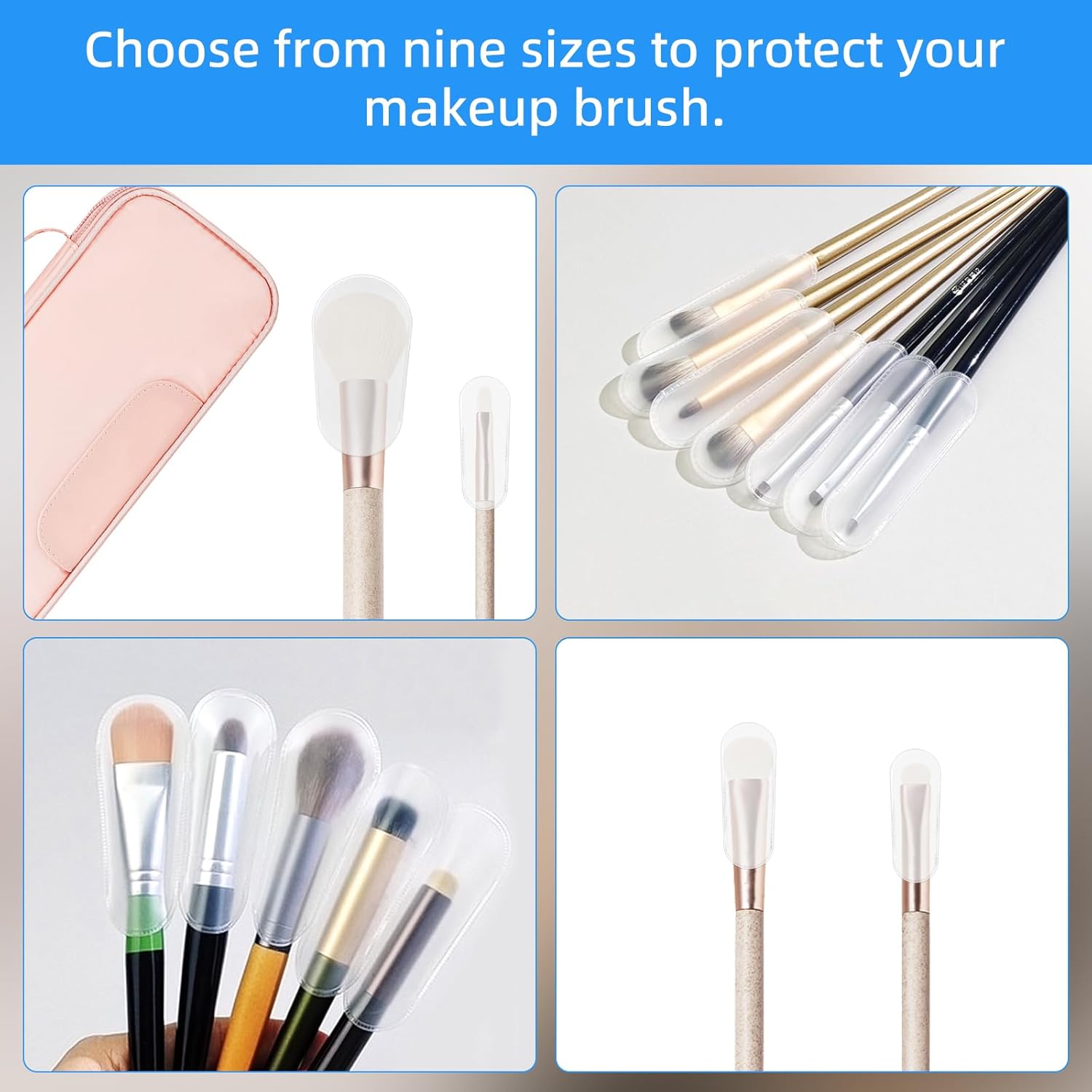 - Makeup brush complete set: You will receive 18 dustproof & waterproof protector sleeves, including 9 different sizes of cosmetic brushes guards protectors caps sufficient to meet daily use and replacement needs, ensuring that your makeup brush is always in a protected state and ready for use at any time