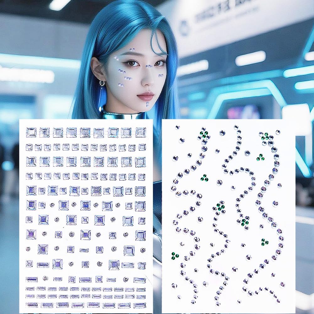 - Self-Adhering Face Gems with an Easy Application - The festival face jewels are already sticky where you can peel and stick to your face.These cute face gems adhere smoothly and comfortable to your skin, and have a shimmery iridescent finish to give your look a sparkly upgrade.
