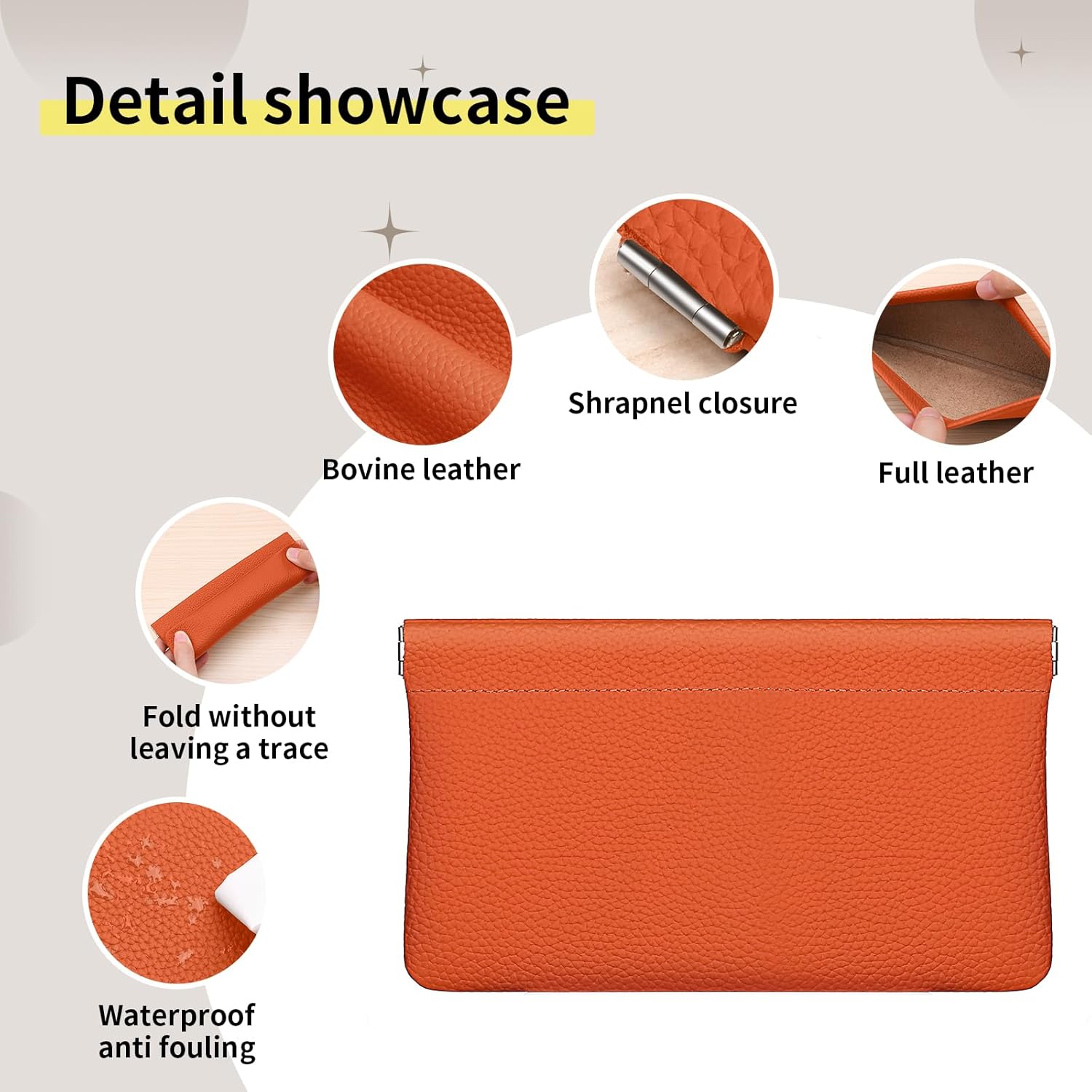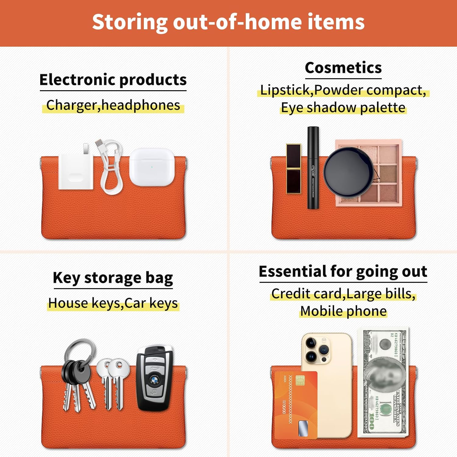 Genuine Leather Pocket Cosmetic Bag for Purse,Coin Purse Lipstick Cosmetic Accessories Travel Pouch for Storage Waterproof Portable No Zipper Self-closing Small Makeup Pouch (Orange)