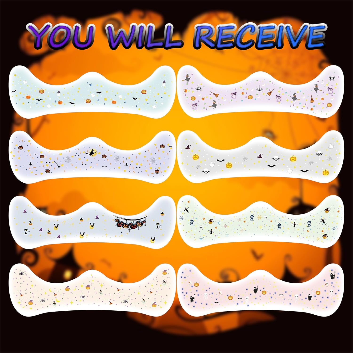 - 【8 Fun & Festive Halloween Designs】Get into the Halloween spirit with 8 playful face tattoo designs! Featuring cute pumpkins, friendly ghosts, sparkling moons, bats, and other festive patterns—perfect for creating a sweet yet unique look.