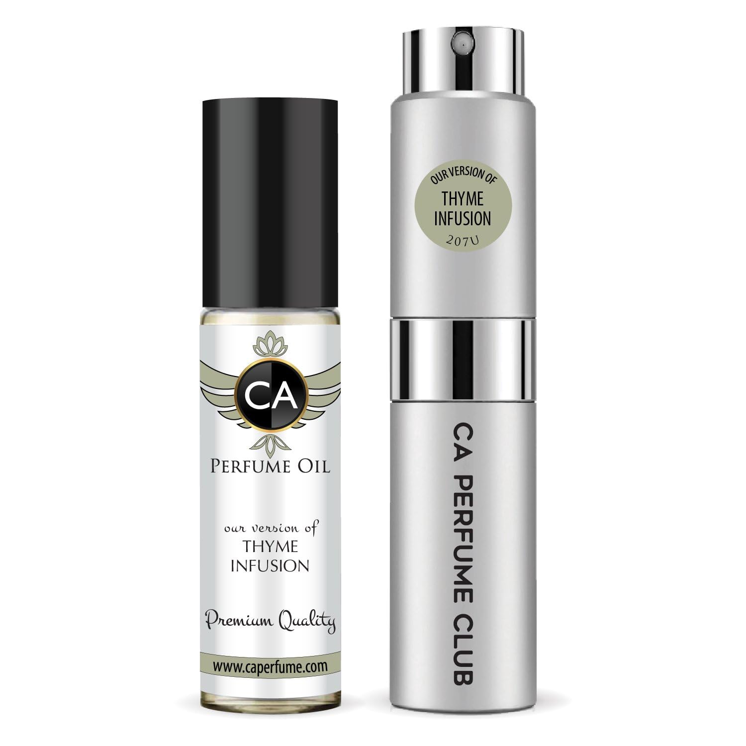 CA Perfume Duo Impression of Thyme Infusion For Women And Men Perfume Layering Set Long Lasting Travel Size EDP + Body Oil Roll-On Bottle 0.27 Fl Oz+0.33 Fl Oz