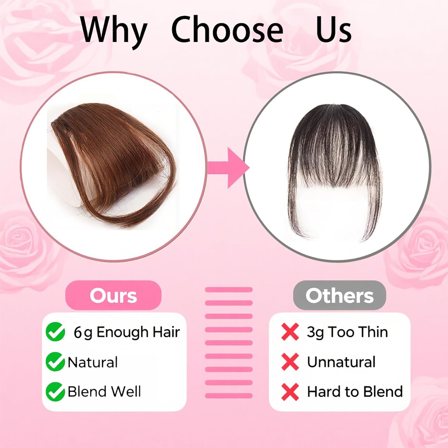 - [Wide range of uses]This fake bangs is suitable for any face shape and any occasion.The natural and seamless blend of these bangs with your own hair will Their and natural appearance ensures you stand out confidently at any event