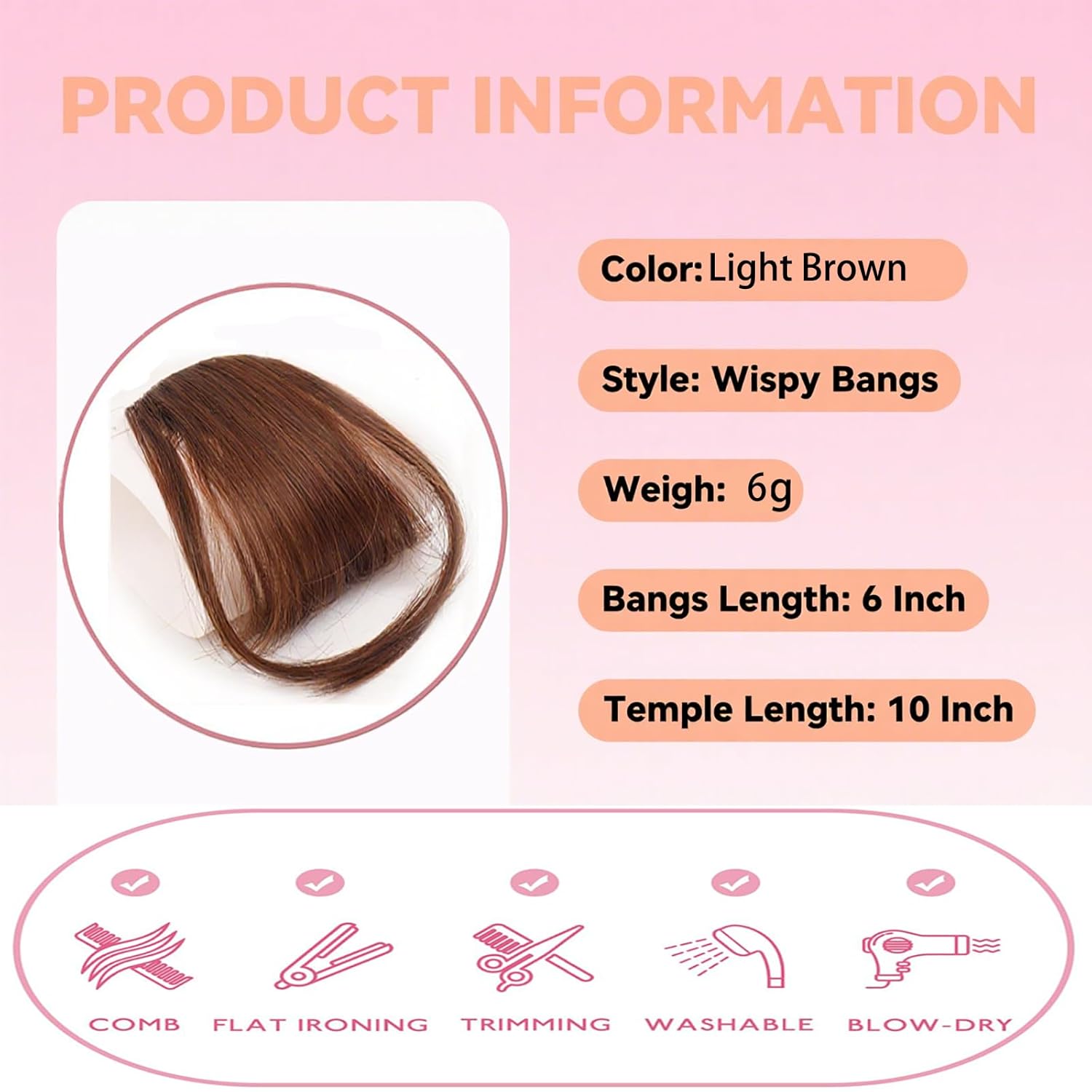Bangs Hair Clip - Temples Wispy Bangs Hair Extensions,Clip in Bangs Japanese A class synthetic fiber,Fake Bangs Clip on Bangs for Women with Daily Wear(Light Brown)