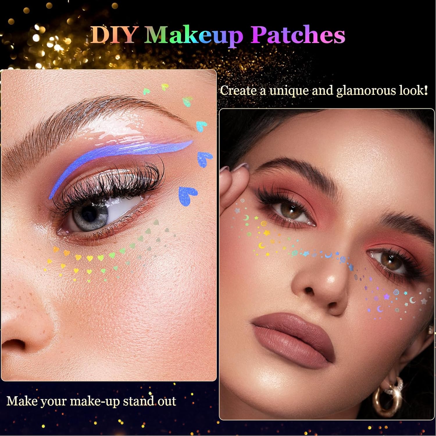 - DIY FACE MAKEUP PATCHES: Our glitter freckles face tattoo contain 12 pcs. Includes 6 styles holographic multichrome rainbow freckles patches and 6 DIY holographic face glitter patches. Free combination and matching, giving you countless ways to sparkle. Whether you’re going for a subtle shimmer or a statement-making glow, these sparkle freckles for women let you customize your style for any occasion