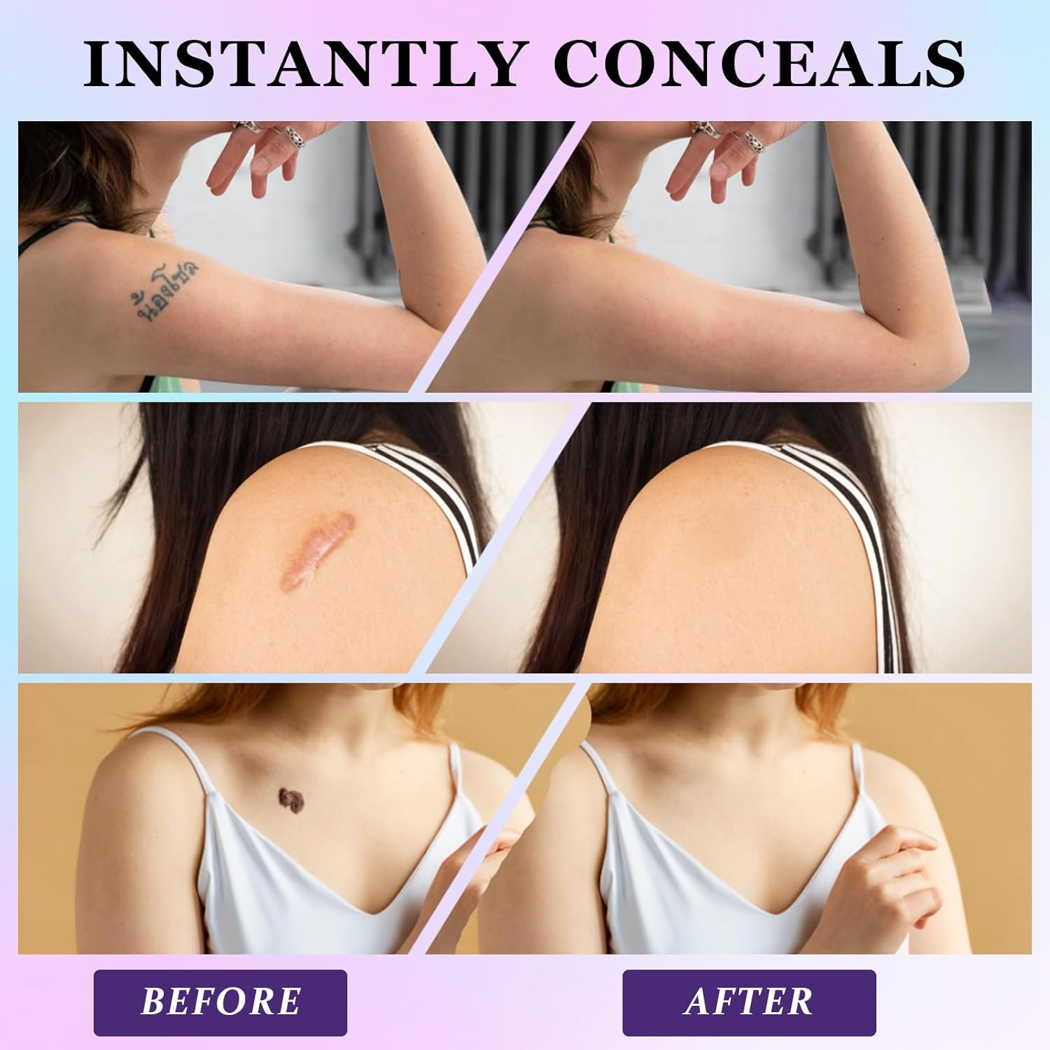 - 【Perfect All-Over Coverage】: This body makeup features a lightweight, natural formula that evens out skin tone. Use our all over complexion perfector to conceal imperfections like stretch marks, blemishes, scars, varicose veins, and tattoos for a smooth, even skin tone on your legs and body. It blends seamlessly for an unnoticeable finish.