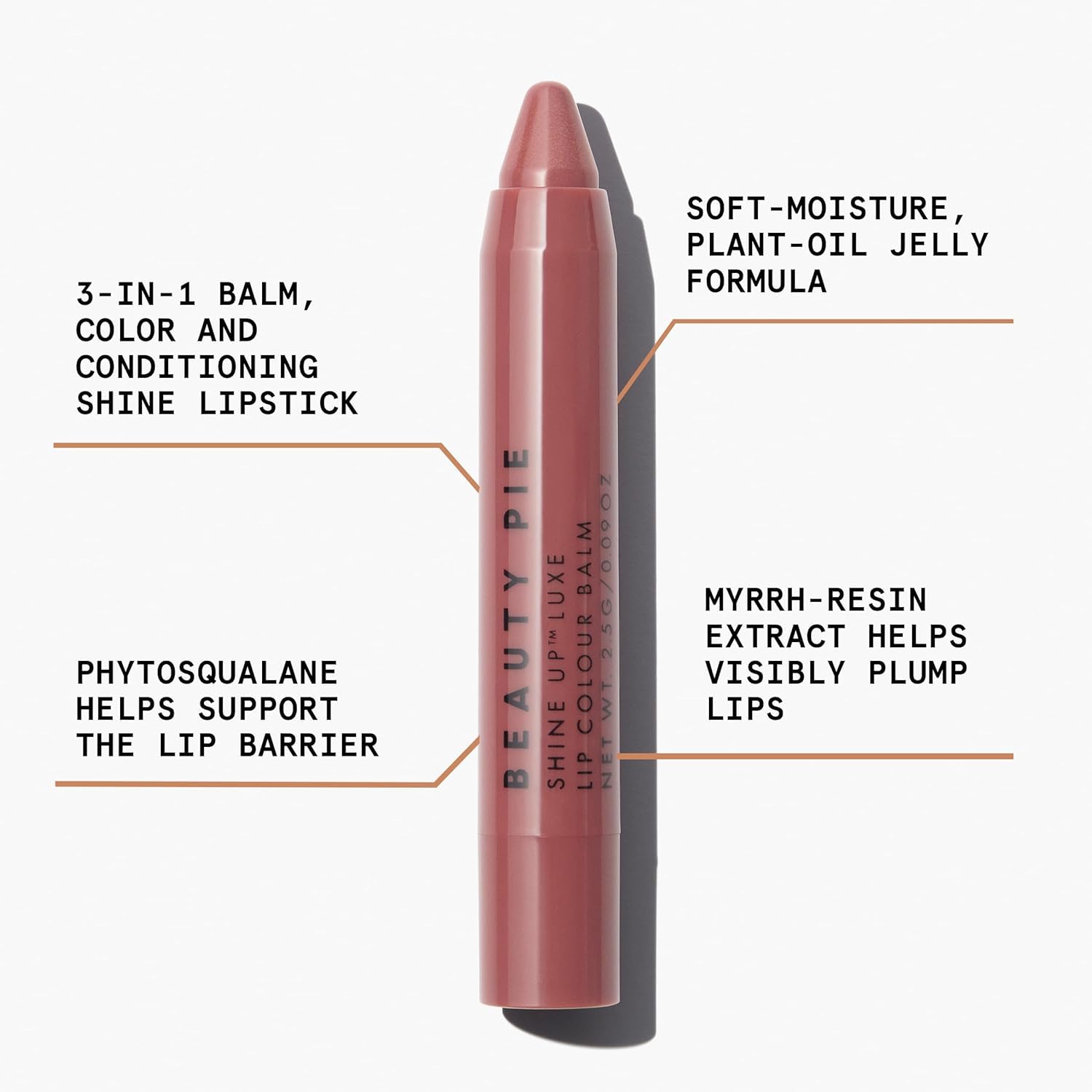 - Key Benefits: Gives a sheer wash of nude-pink color with a hint of shimmer, supports the lip barrier, and visibly plumps lips.