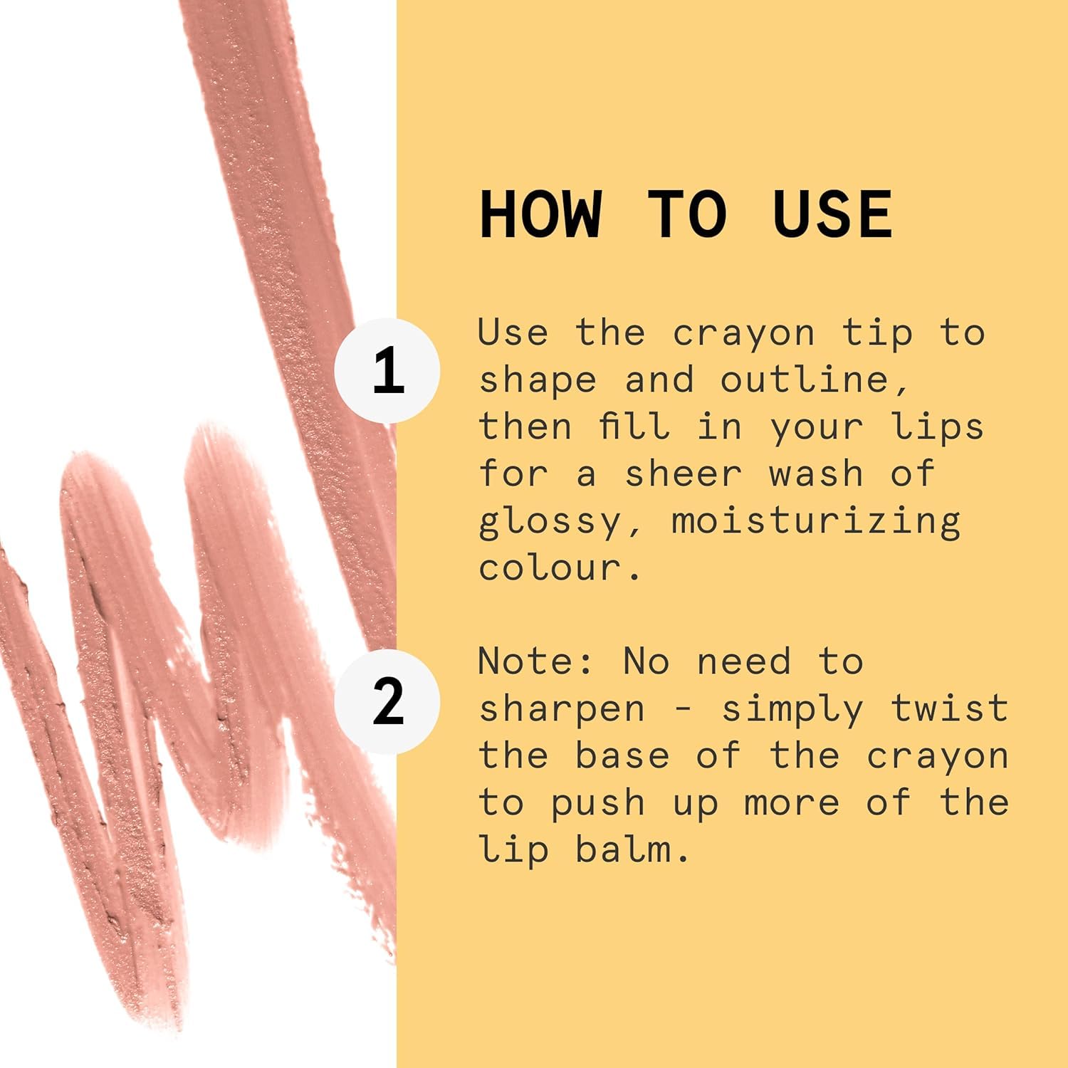 - How To Use: Use the crayon tip to shape and outline, then fill in your lips for a sheer wash of glossy, hydrating colour. Note: No need to sharpen - simply twist the base of the crayon to push up more of the lip balm. Suitable For: All skin types.