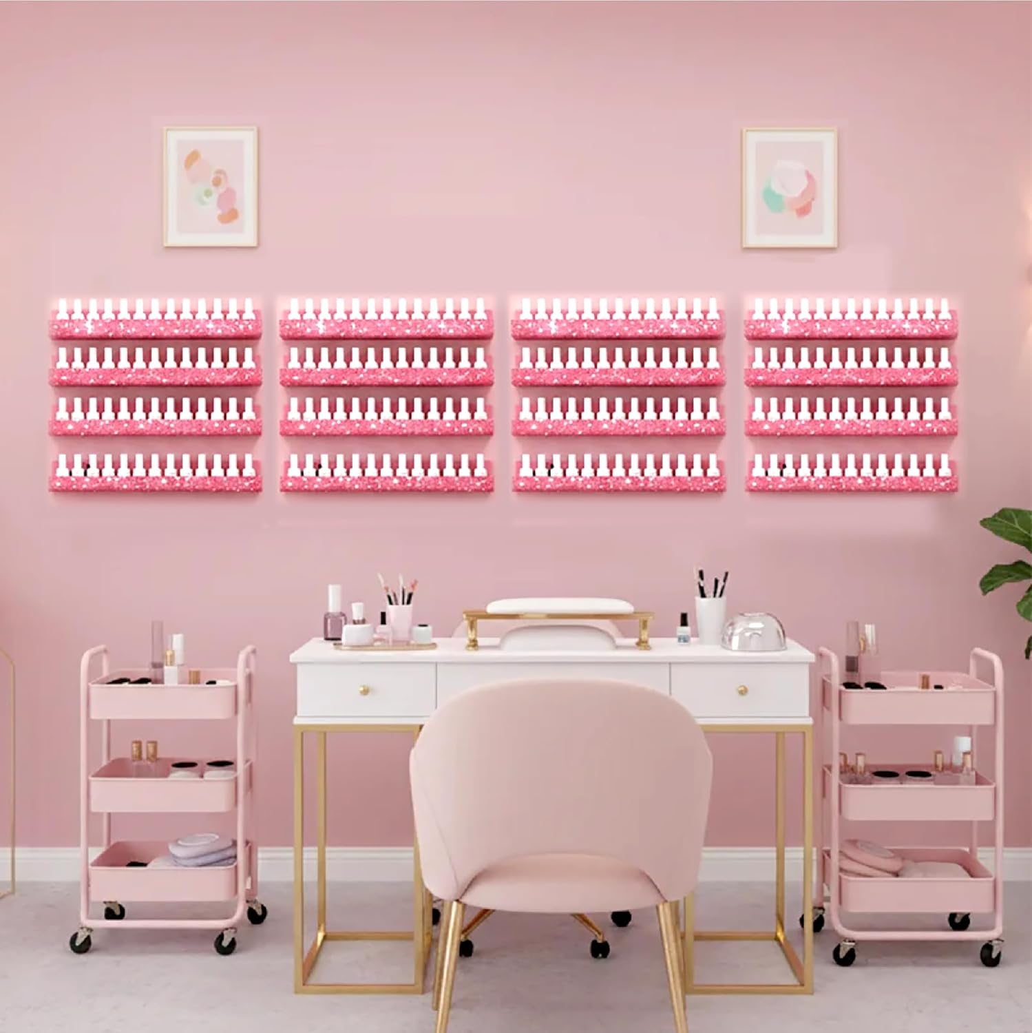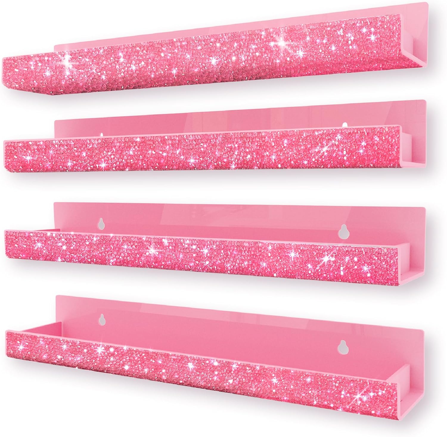 Care&More YJ 4 Pack 15 Inch Nail Polish Organizer,Diamond Crystal Rhinestone Acrylic Nail Polish Organizer,Sunglasses Essential Oil Picture Display Storage Pink