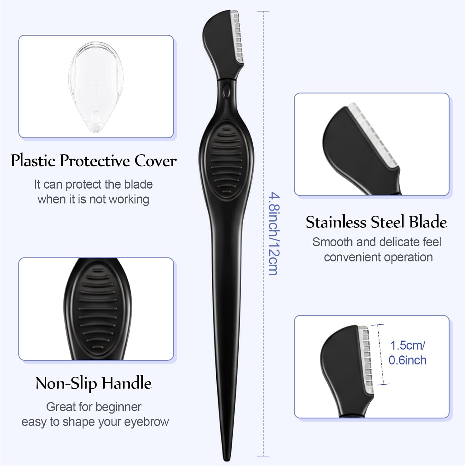 - Easy to store: each eyebrow trimmer is equipped with a precise plastic cover to protect the razor when not in use, light weight and portable size designed to allow for quickly and easily retouching anywhere and anytime, also friendly to travel