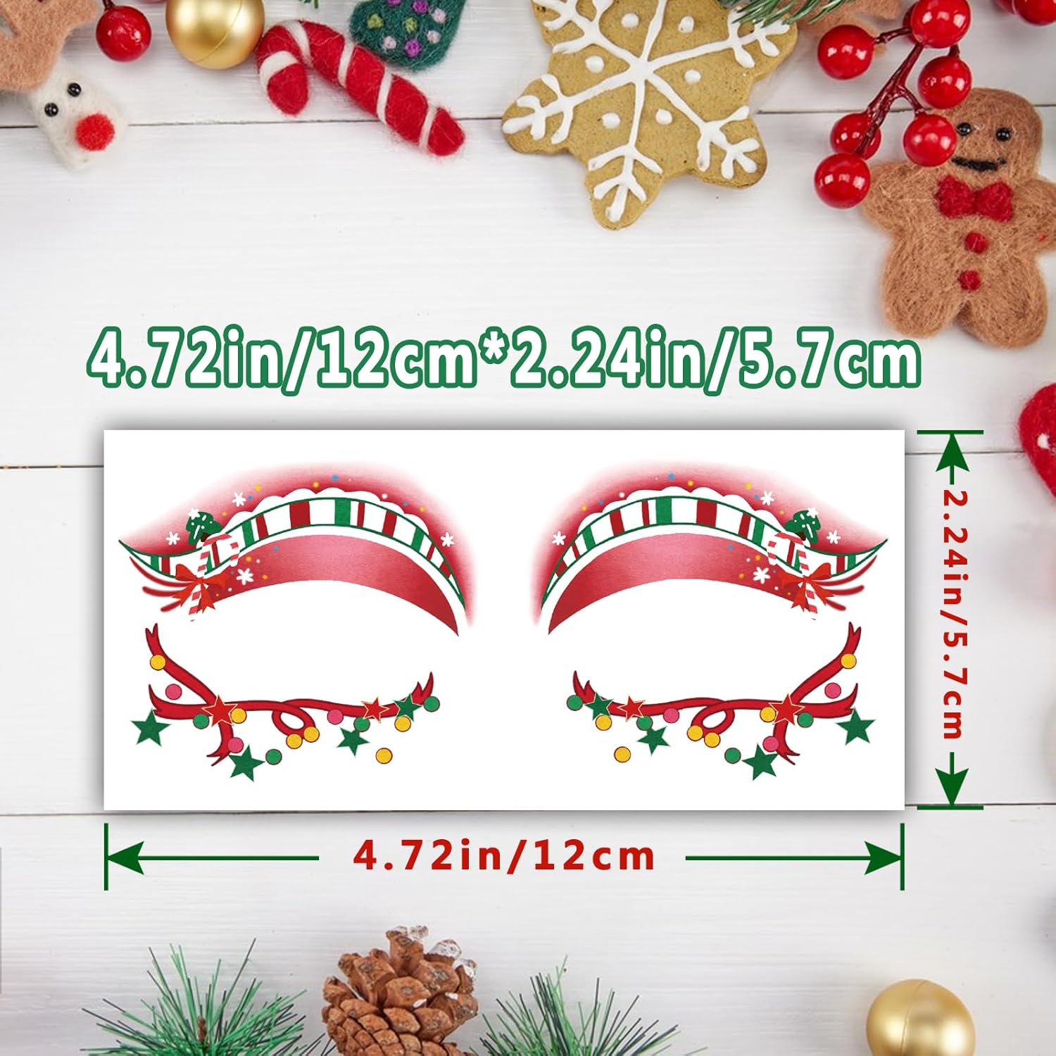 Christmas Eye Shadow Temporary Tattoos Stickers Face Makeup Patches, Xmas Tree Santa Claus Eyeliner Decals Fake Tattoos for Women Girls, Christmas Stocking Stuffers Party Supplies
