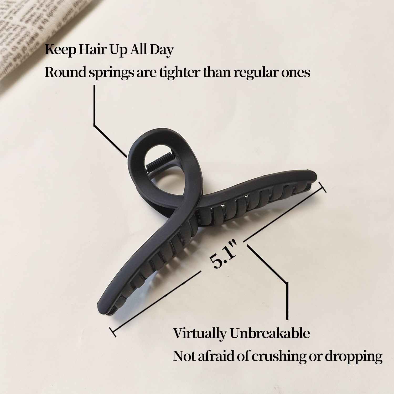 - Jumbo Claw Clips: Measures 5.1 inch in length. Perfect for long and thick curly wavy hair. Comfortably hold all day and will not poke into your head.