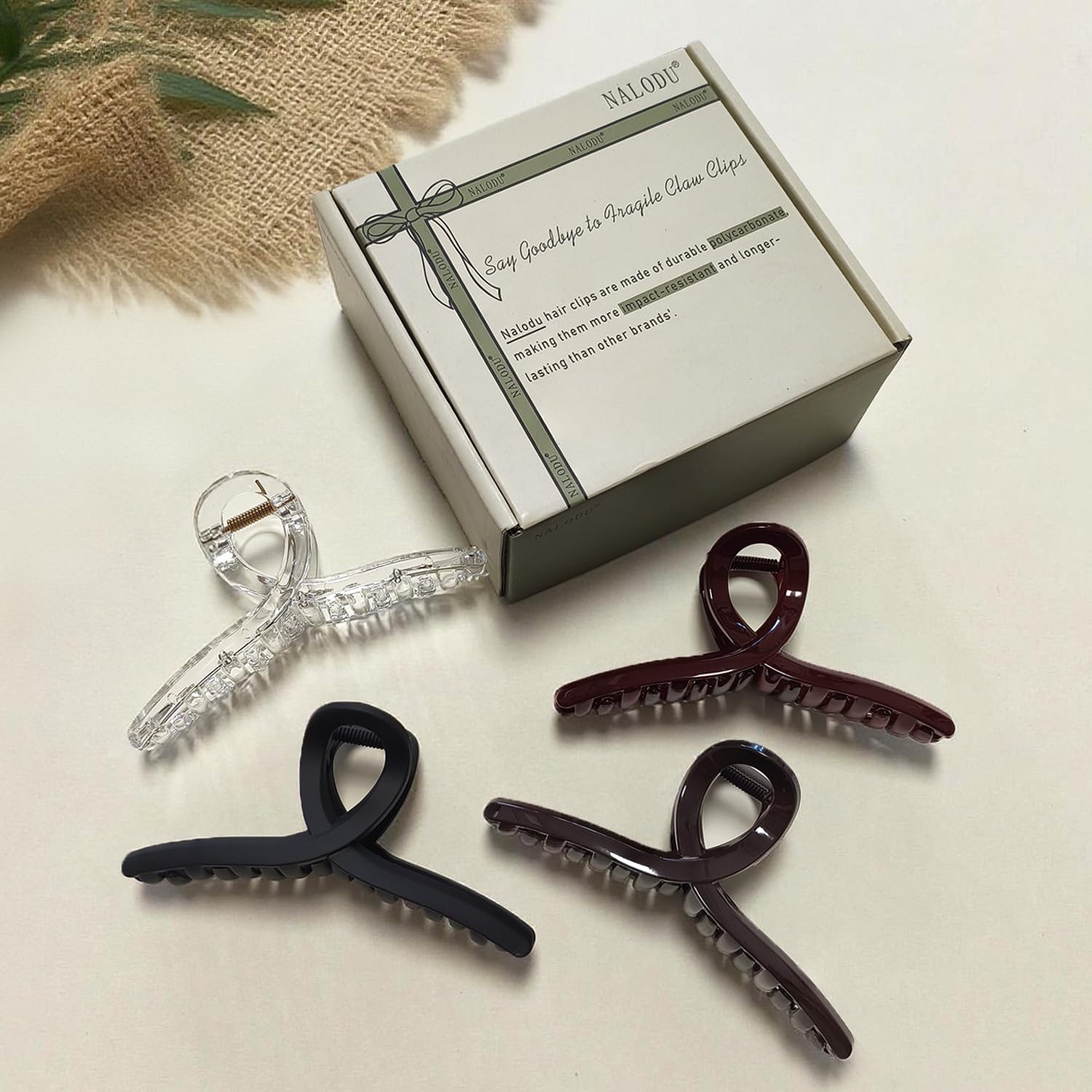 - Great Present Ideas - 4 pcs hair clips in matte black,glossy burgundy, transparent and chocolate colors are good for you to give as presents around the holidays. Perfect for ladies of all ages.