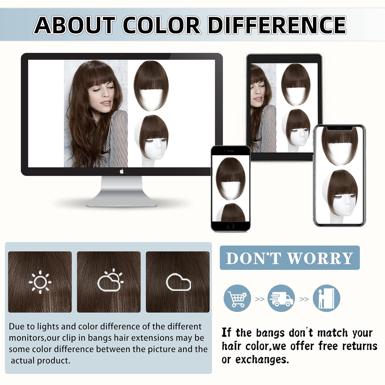 - Versatile Style for Any Occasion: We offer a range of colors to match your natural hair. Please note that screen differences may cause slight color variations. If the shade isn't perfect, contact us for a solution. From a quick daily upgrade to the ultimate Halloween costume accessory, these faux bangs are your go-to for a confident, stylish transformation without commitment.