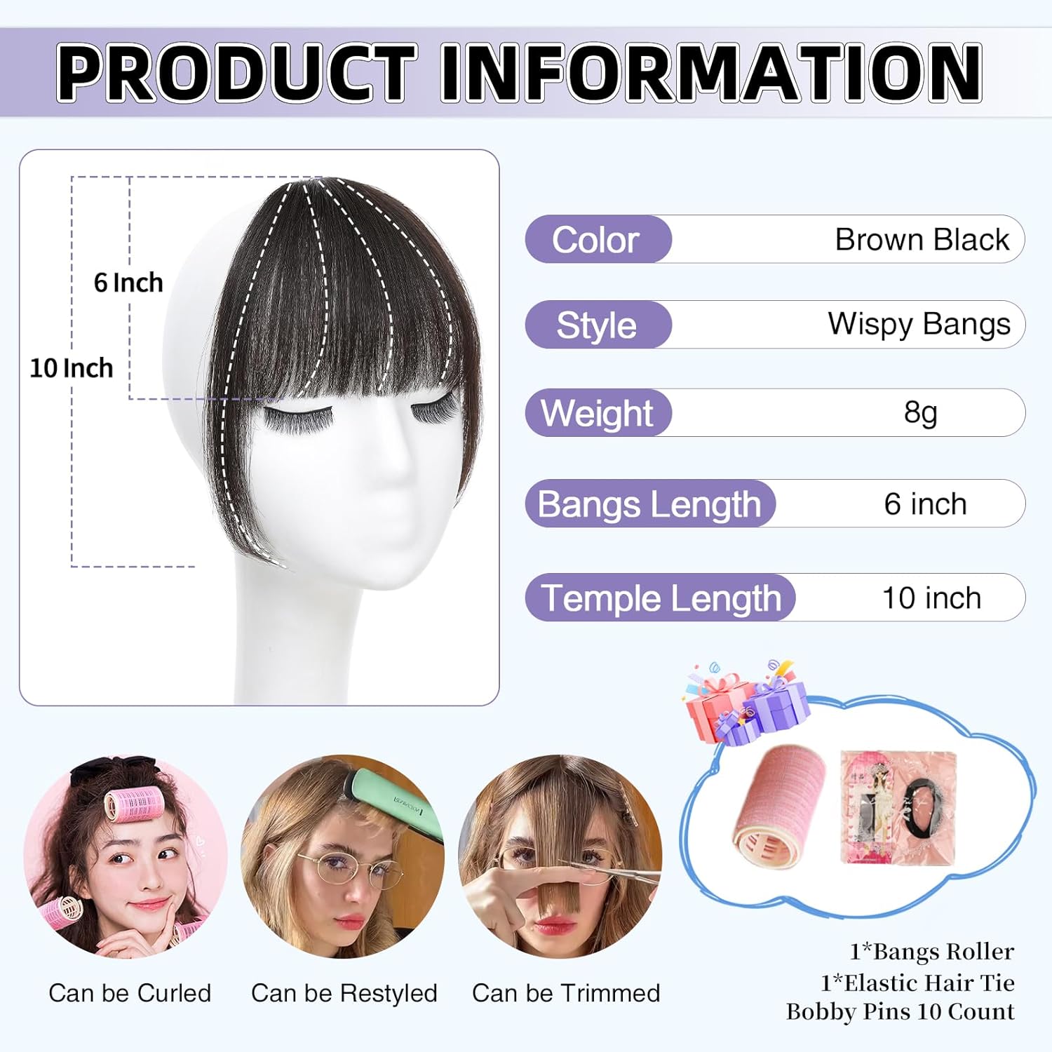 - Heat-Friendly & Styling Freedom:Made from high-quality human hair, these bangs can be styled with heating tools like curling irons or straighteners (low heat recommended). They hold shape all day and can be washed and blown dry to restore volume and texture after shipping.
