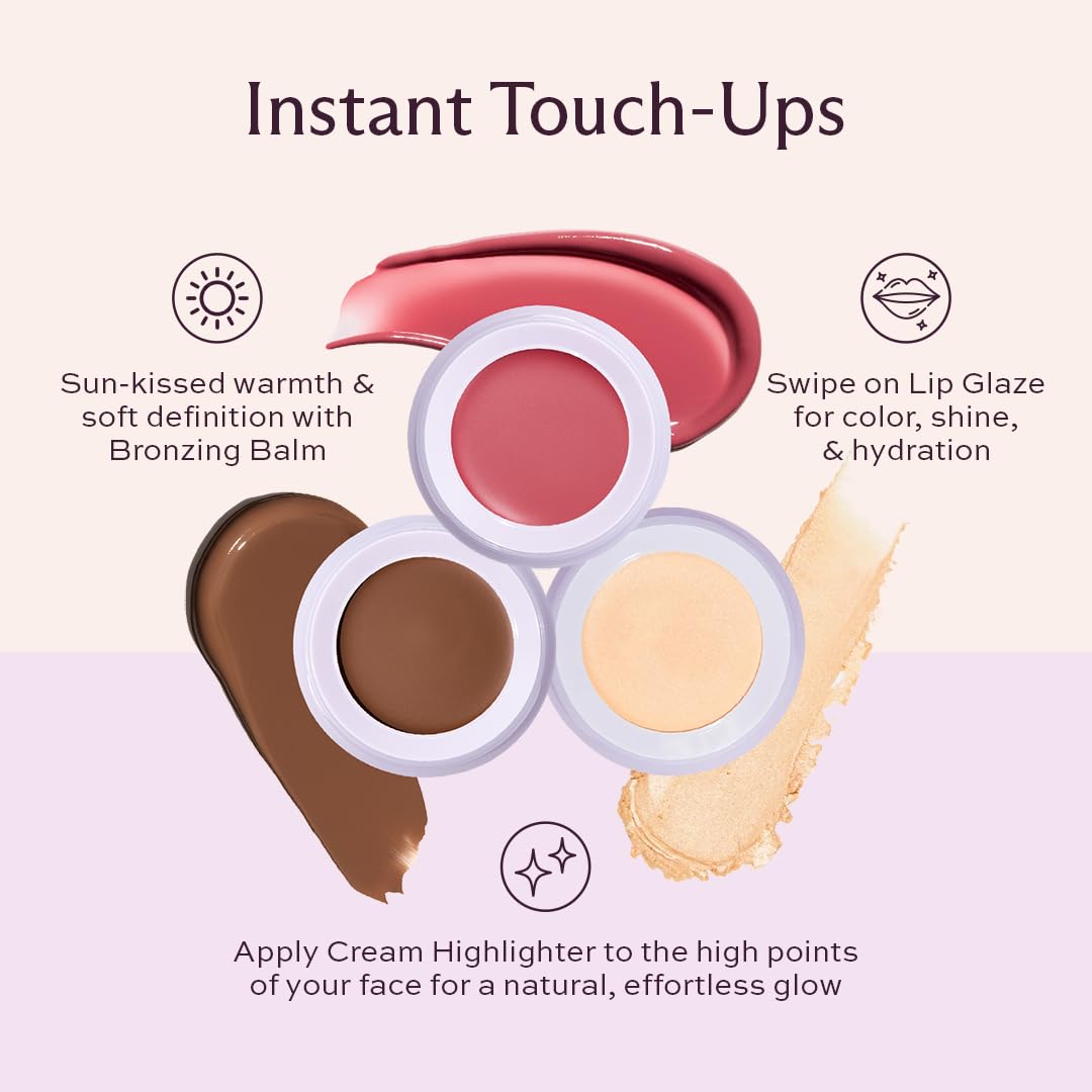 - Buttery, Lightweight Finish – This 3-in-1 portable makeup stack includes a creamy bronzer, soft powder highlighter, and nourishing lip glaze for quick touch-ups anywhere.