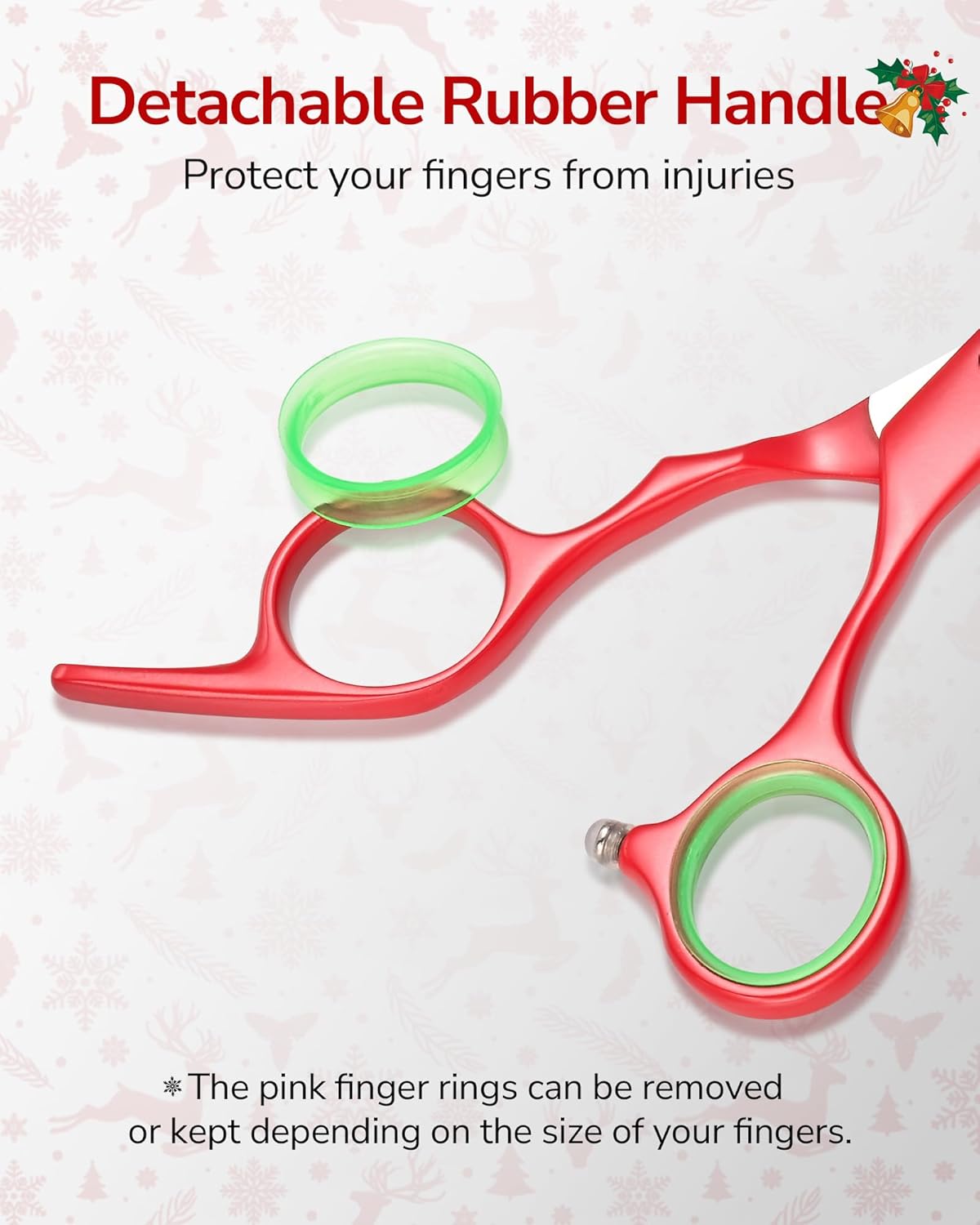 - Festive Christmas Edition: Celebrate the season with our special Christmas Red Edition shears! The festive red finish, ruby-like pivot, and green finger ring accents make this a stylish and practical gift for aspiring barbers or hairstylists. At 6.5 inches, they’re perfectly sized for everyday cutting. Give the gift of precision and beauty this holiday season—a thoughtful and functional present anyone will love