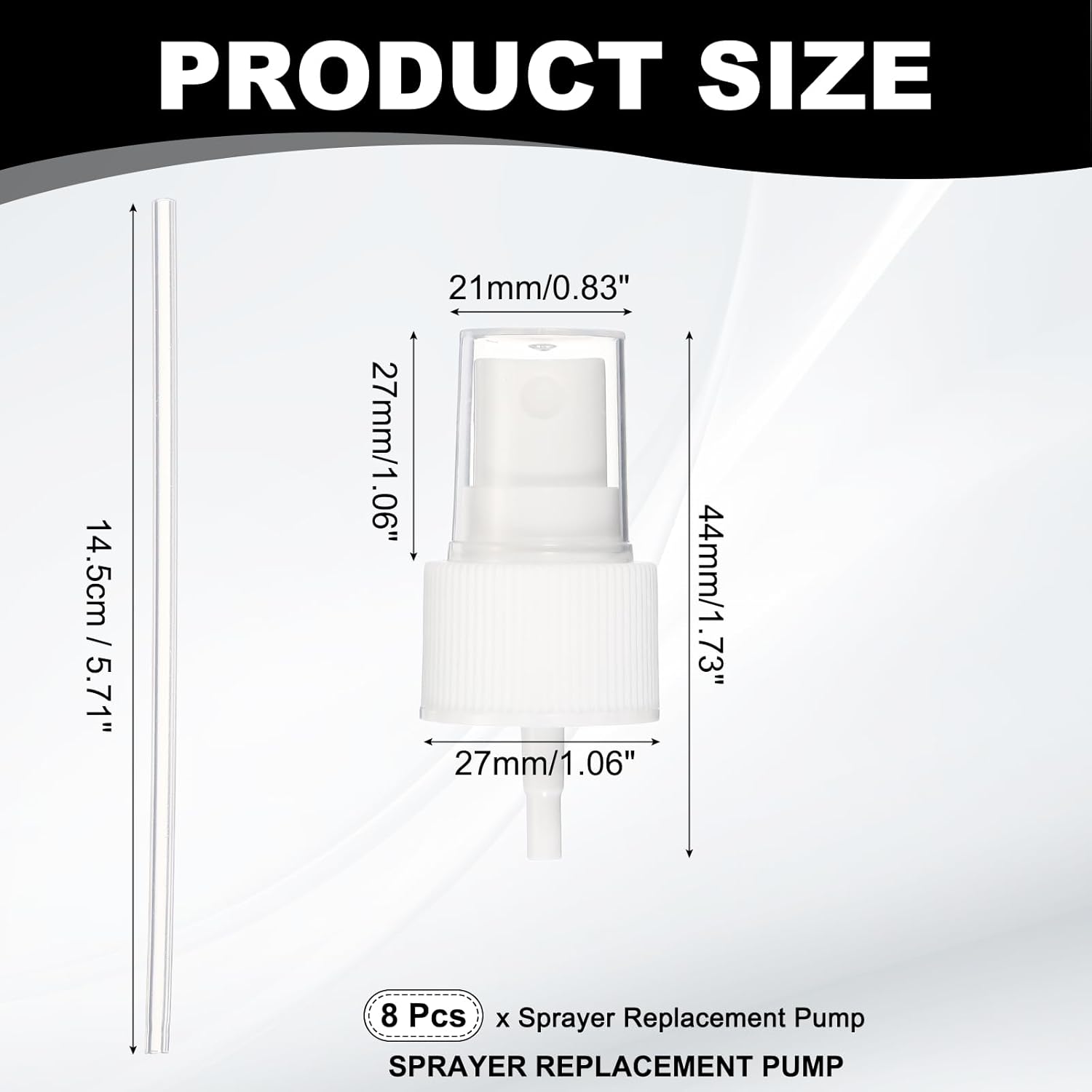 - Size: Color: White; Material: Plastic; Head Dimension: 27 x 44mm / 1.06 x 1.73 inch(ODxH); Cap Dimension: 21 x 27mm / 0.83 x 1.06 inch(ODxH); Pipe Length: 14.5cm / 5.71 inch; Package Content: 8 x Sprayer Replacement Pump