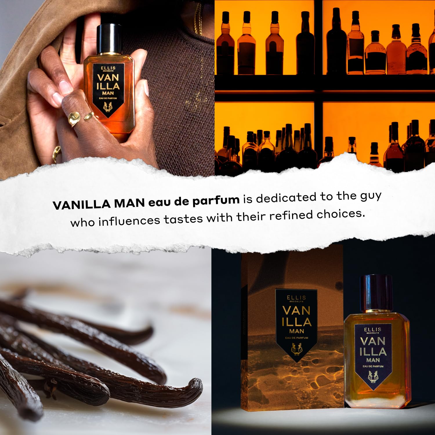 Ellis Brooklyn VANILLA MAN Eau de Parfum for Men 1.7oz / 50ml – Warm Spicy Fragrance with Vanilla Absolute, Bergamot, Clary Sage & Cedarwood – Warm, Rich, Modern Scent