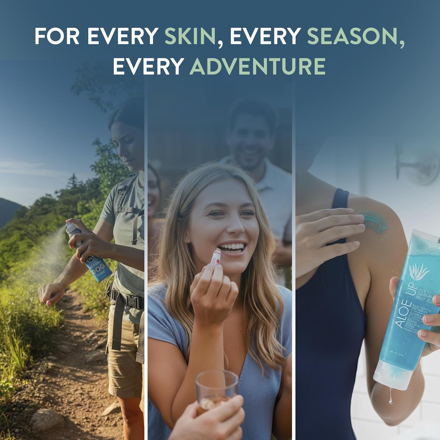 Aloe Up Sun & Skin Care Gift Basket – 6-Piece for Men & Women Set with SPF Moisturizers, Sport Sunscreens, Lip Balm & Aloe Gel – Alcohol-Free, Reef Friendly, Hydrating Skincare Kit