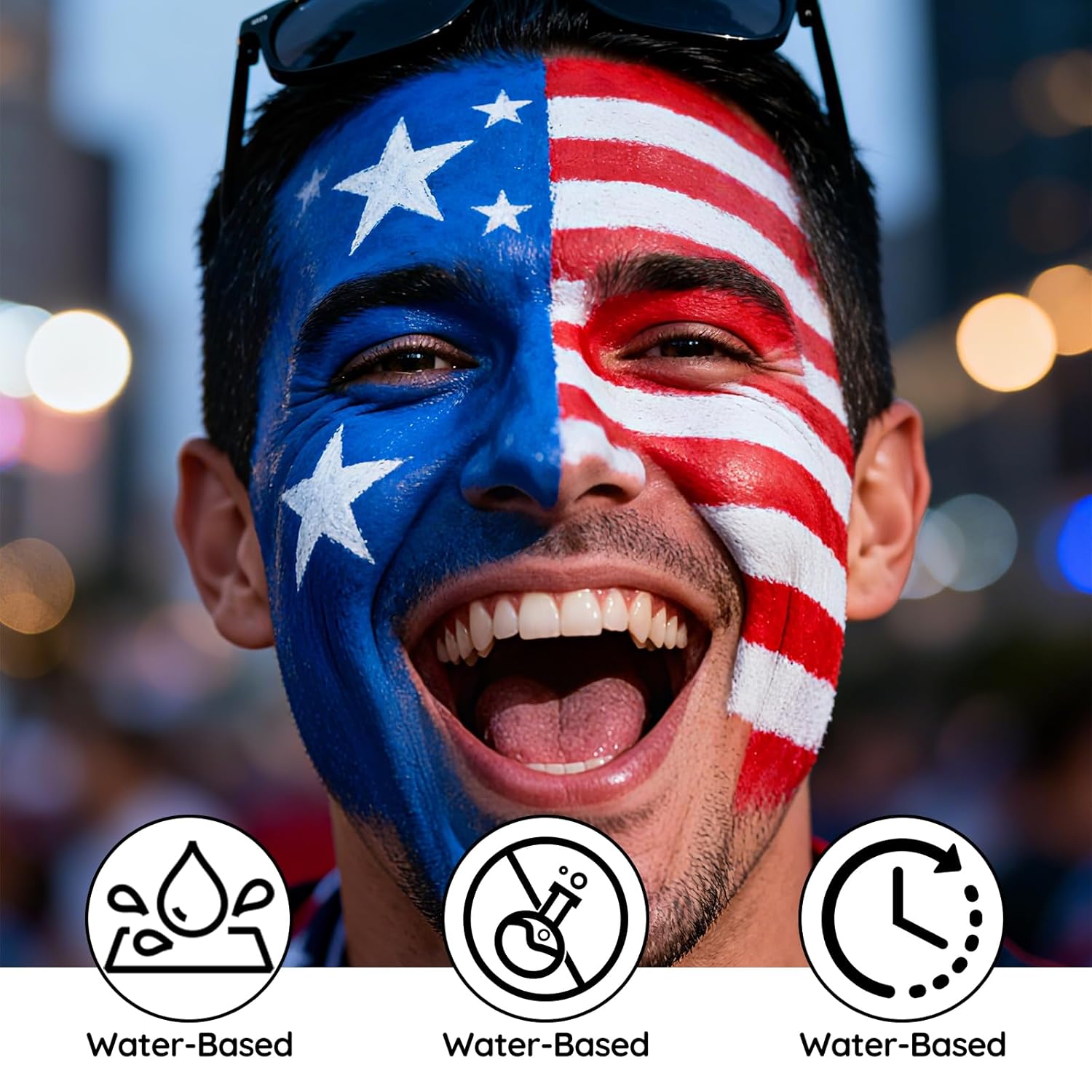 - [Washable Face Paint] Our face and body paint uses a water-based cream formula that washes off completely with just soap and water. This easy-to-remove formula eliminates the need for harsh scrubbing or chemical solvents, you can quick and convenient cleanup after Halloween parties, cosplay events, or stage performances. Unlike oil-based products, this washable paint rinses off completely without leaving sticky residue or stains on skin and clothing.