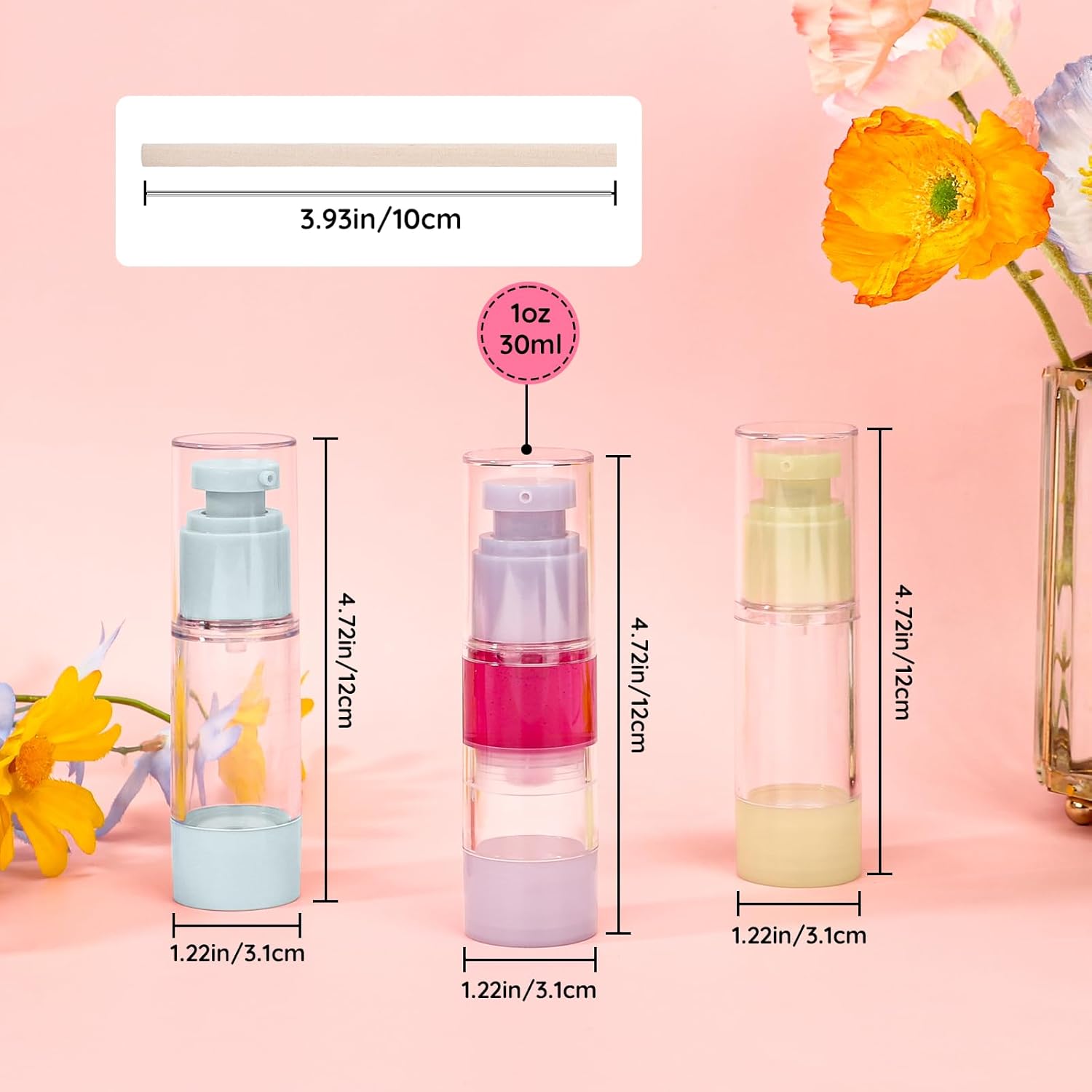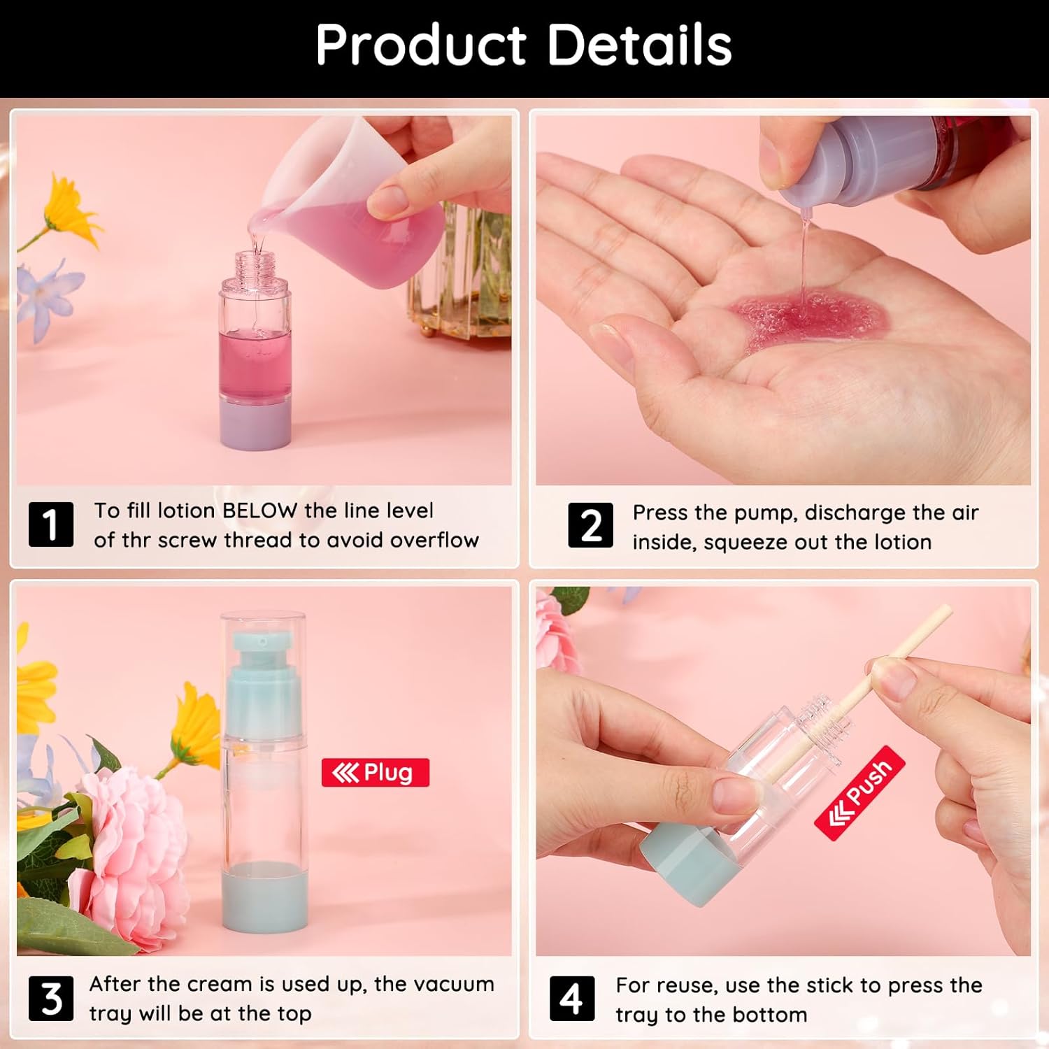 - Large Diameter Design: The large opening design makes it easier to fill and clean them. With small wooden sticks and label stickers, you can easily reuse these airless pump bottle and classify them with stickers