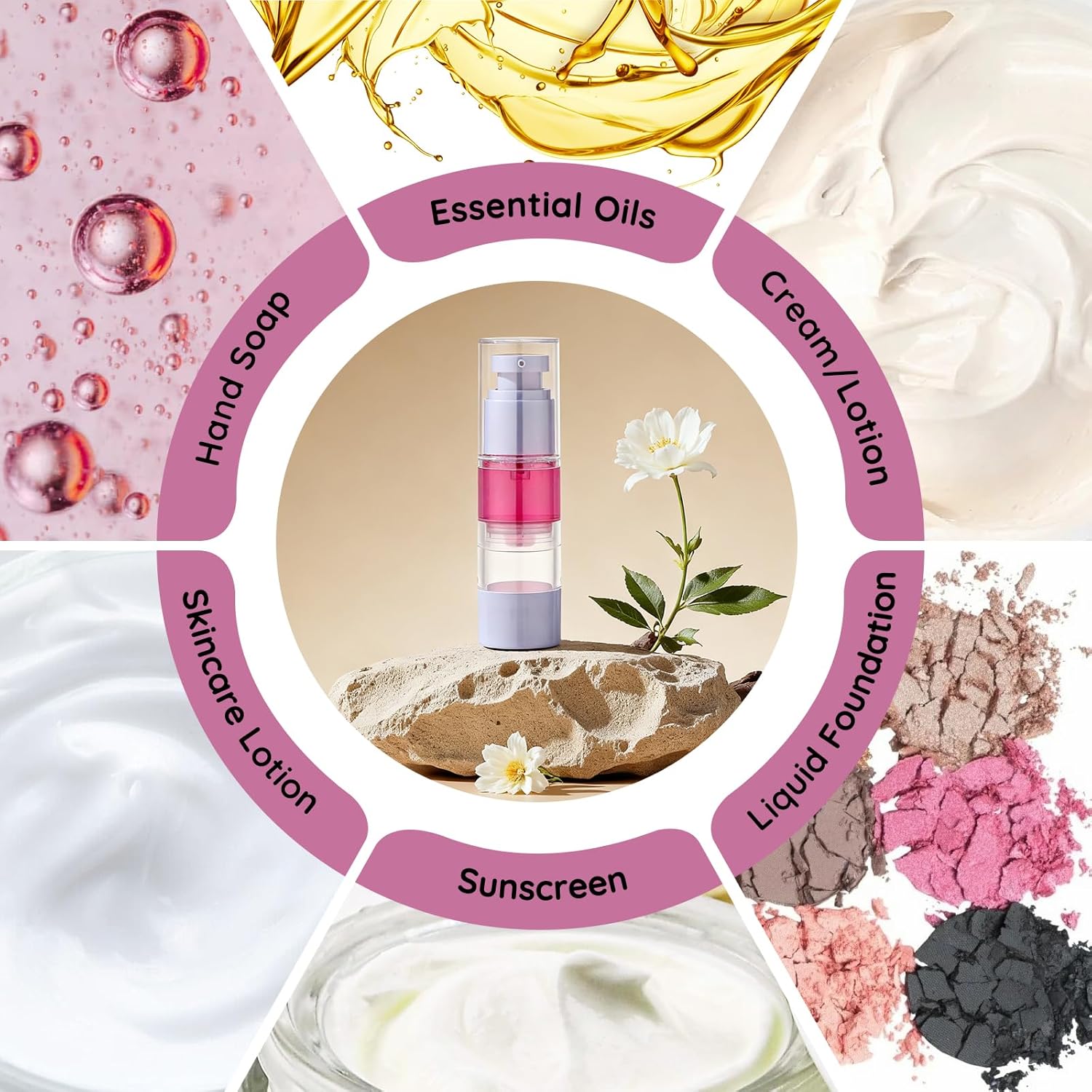 - Airless Pump Bottles: These airless pump bottles have a strawless design,and they can better avoid contamination of the liquid inside,with better sealing and higher utilization,keep your makeup moisturized for a long time